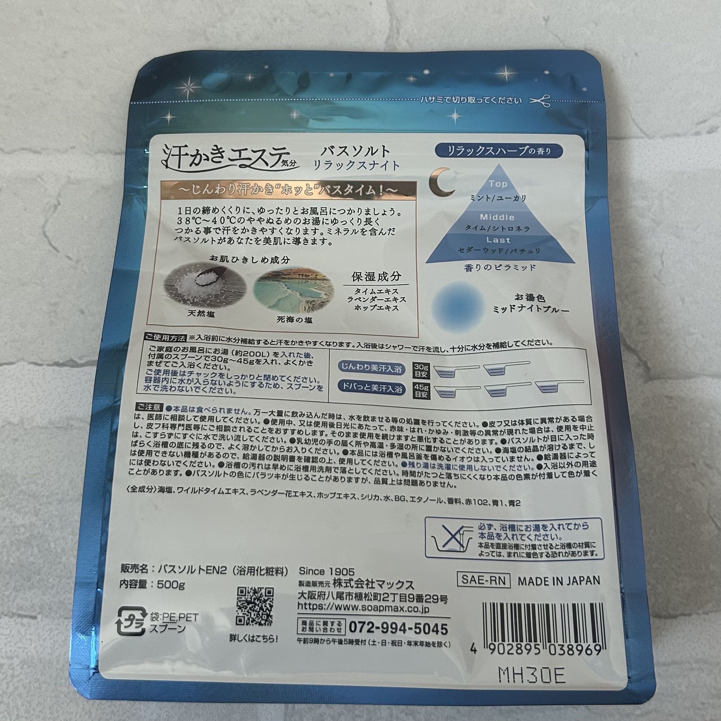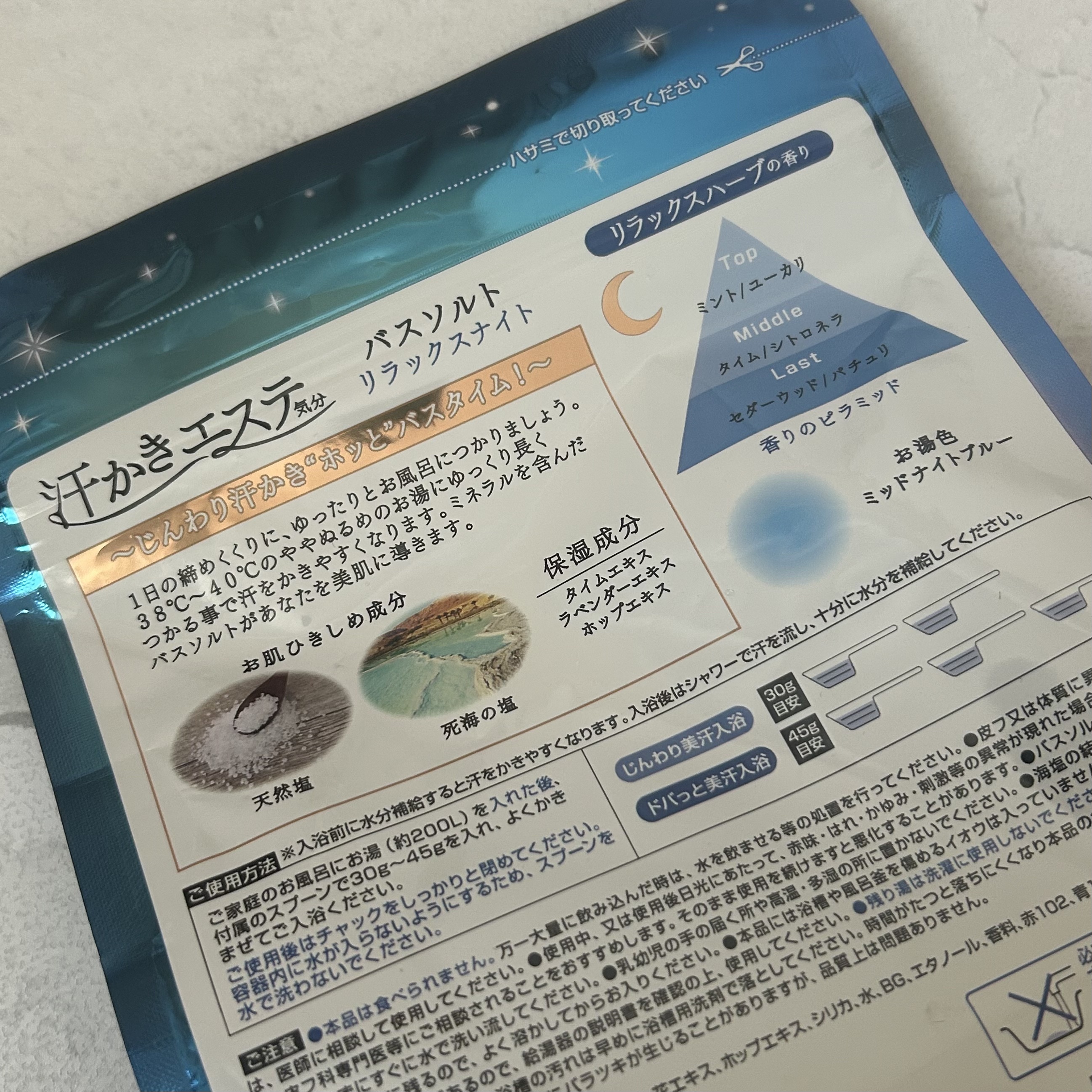 マックス汗かきエステ気分リラックスナイト1日の締めくくりにゆったりとバスタイムを38℃〜40℃のややぬるめのお湯にゆっくり長く浸かることで汗をかきやすくなります✨️✨️お肌のひきしめ成分として天然塩と死海の塩を配合保湿成分としてタイムエキス・...