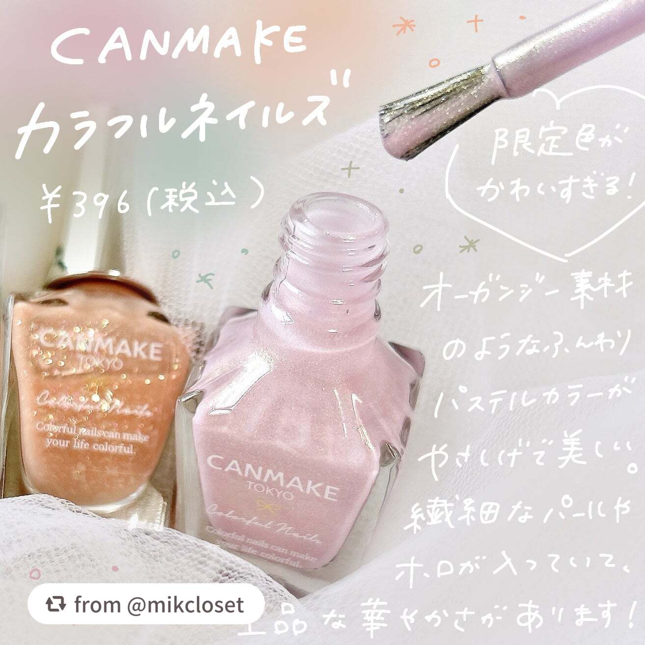 キャンメイクさんのネイルシリーズは絶妙なカラー展開が可愛くて、ハケも塗りやすいし乾きも早くて仕上がりが綺麗な上にお手頃価格で大好きです!! 早くLIPSさんで購入出来るようになってくれると嬉しいです🥺