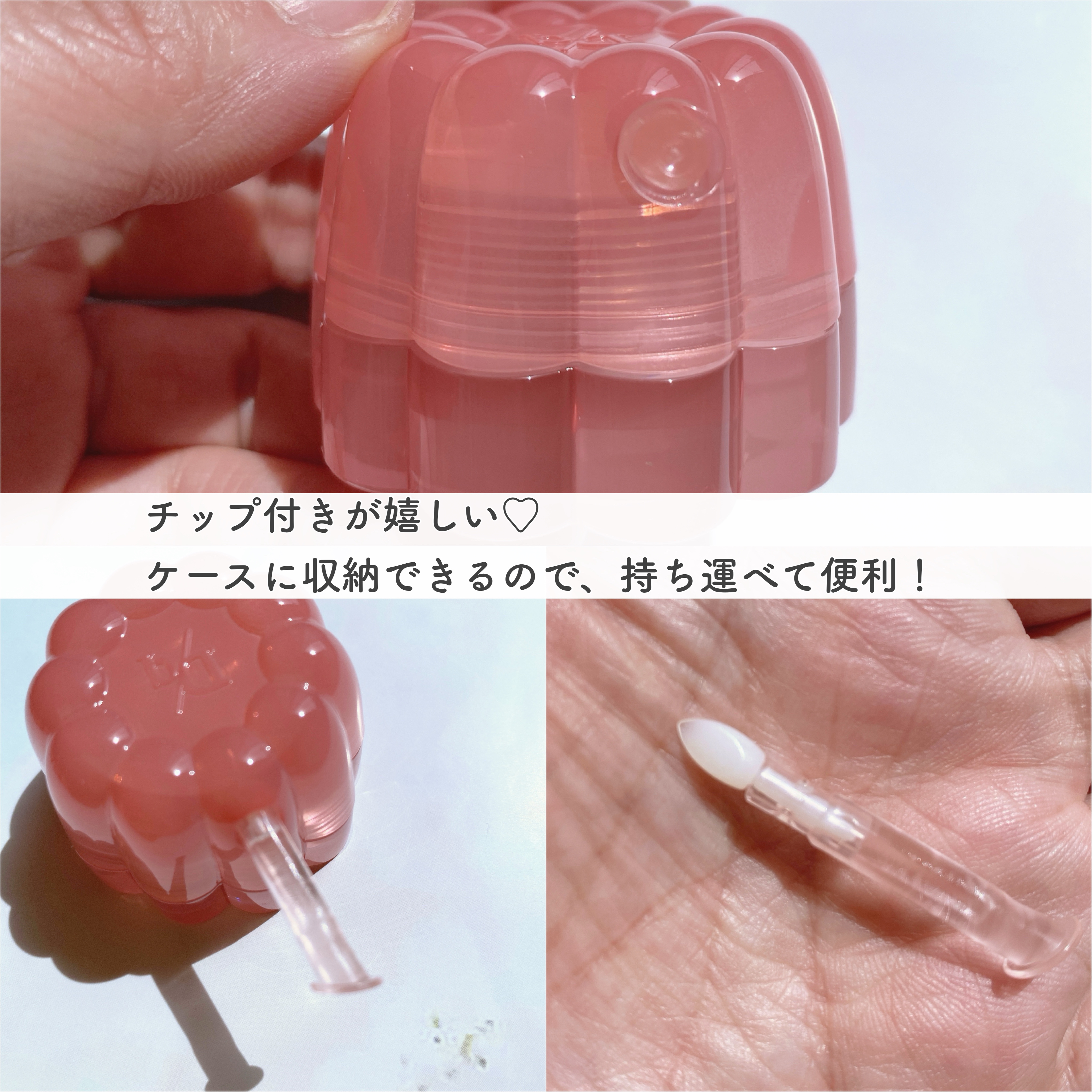 - プリンのような新感覚のチューイングテクスチャーに澄んだカラー感が加わったリップ&チーク。 ぷるぷるとしたゼリーのようなツヤ感が唇と頬にほのかに染まるウォーターリーグロウリップ&チーク。 甘いプリンのようにぷるぷるとした新感覚のチューイングテクスチャーで、べたつかず、なめらかに密着し唇にしっとりとした保湿感を与えます。 イエベ、ブルベの自分の肌トーンごとに使いやすい20色の多彩なカラーバリエーション、透明感のある澄んだカラーと鮮やかな発色、重ね塗りすればするほどあふれ出す、ほのかな水光リップへ導きます。 可愛いプリンのようなラブリーなパッケージで持ち運びが簡単!パッケージの中にはミニブラシが付いていて、衛生的に使えます。 ※ふんわりとしたゼリーテクスチャーの特徴により、固まりが生じることがありますので、薄くレイヤーを重ねて十分に塗り伸ばしてください。