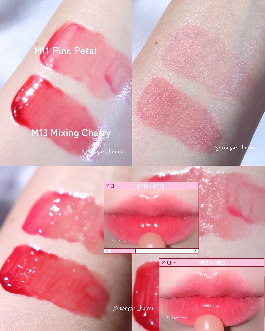 みんな大好きなやつ ティントで落ちにくいからそんなに気を遣わなくていいのにラメまで入ってるのは反則 ラメのおかげで輝きが増してる そもそもボムティントがそこそこ艶感あったのに、ラメで光の反射が加わってさらにツヤツヤに…!! 上唇はぼかして塗って、下唇中央を多めに塗るとぽってりして可愛いと思う
