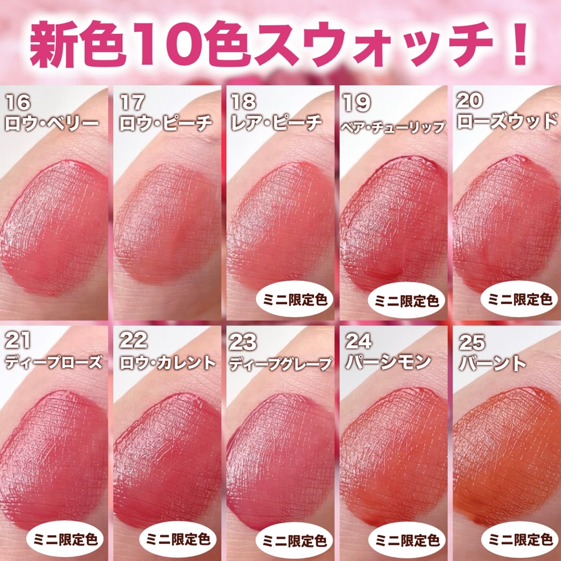 ⋆.˚ᡣ𐭩.𖥔˚hinceミニリップ+新色10色⋆.˚ᡣ𐭩.𖥔˚5/7(水)発売୨୧୨୧通常¥1,760(4ml) ↓ミニ¥990(2ml)新色10色୨୧୨୧ポーチにも入れやすい!安いし、色を試したい時にもイイ新色が出るところも最高だよね...