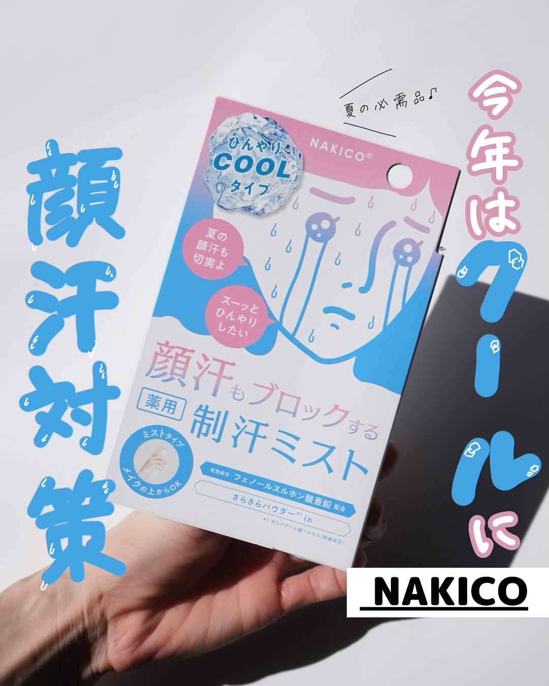 \ひんやり涼しげ!制汗ミスト/NAKICO®@nakico_official薬用フェイスミストクール(ホワイトクールサボンの香り)40mL【医薬部外品】¥1,980POPなパッケージで昨年SNSで話題になったNAKICOの顔汗用制汗ミストにひ...