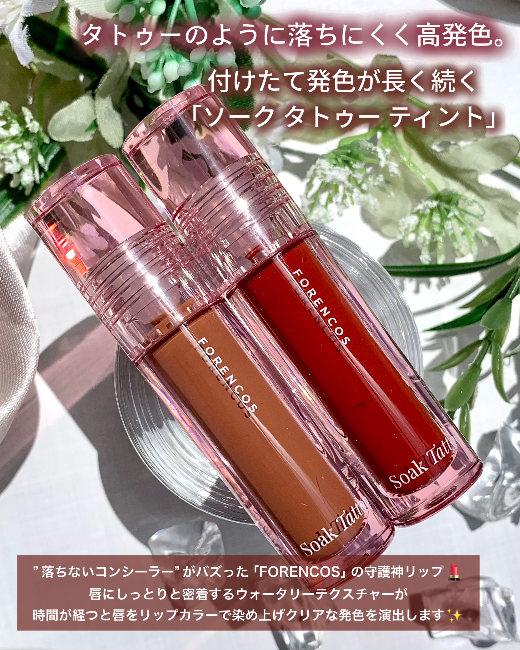 FORENCOSソークタトゥーティント#守護神リップ落ちにくく、乾燥しづらい😍(ヒアルロン酸配合)また、カラーバリエーションも豊富セミマットなテクスチャーが可愛いです💓FORENCOS様から頂き、お試しさせて頂きました🙇♀️#PR#fore...
