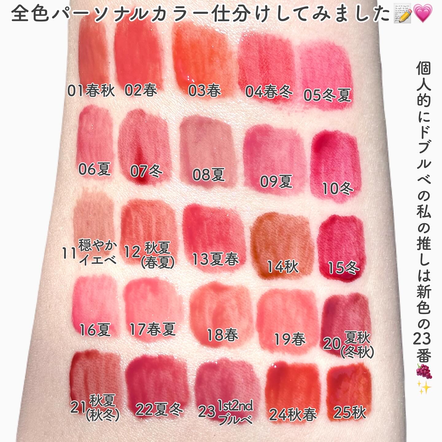 ブルベ夏の大定番といったらこれ!なピンクベージュ。 膜を張ったようなツヤ感が可愛すぎるナチュラルローズ。 明るく柔らかいピュアなニュートラルピンク。 柔らかく可愛らしい印象の新色モーヴピンクベージュ。 しっかり青みを感じる大人っぽい絶妙ローズ。 ほんのりブラウン混じりの落ち着いたダスティローズ。