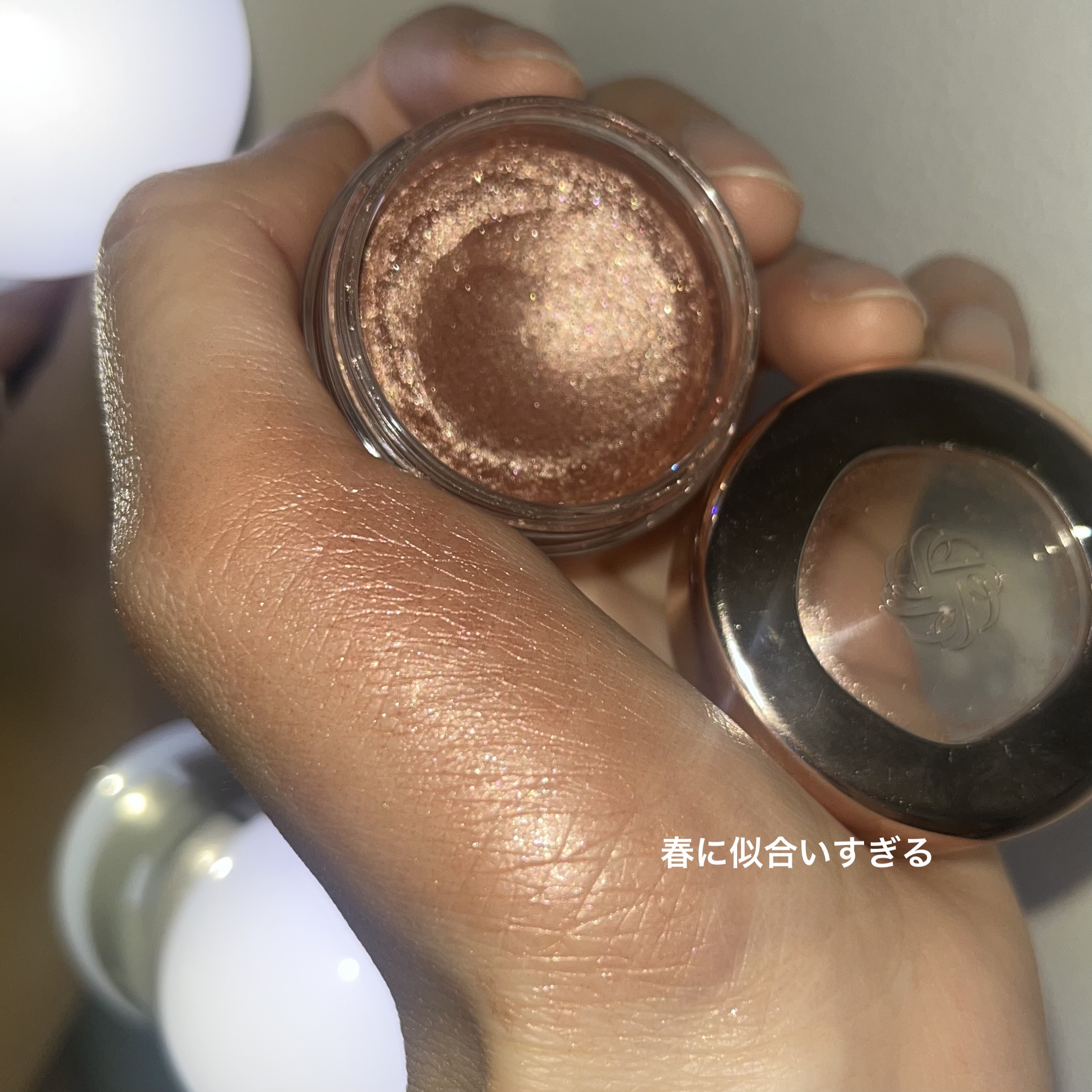 粉が細かくて発色最高 たしかに塗るとほうれい線がマシに見える 単体で使用してもいいし、パール系ハイライトの下地として使うとめちゃくちゃハイライト効果抜群になる 目の下のくすみ飛ばしにも使える 指塗りするとムラがすごい 相性の悪い下地とまざるとマダラになりやすい マスクのヨレには蒸れと強くない