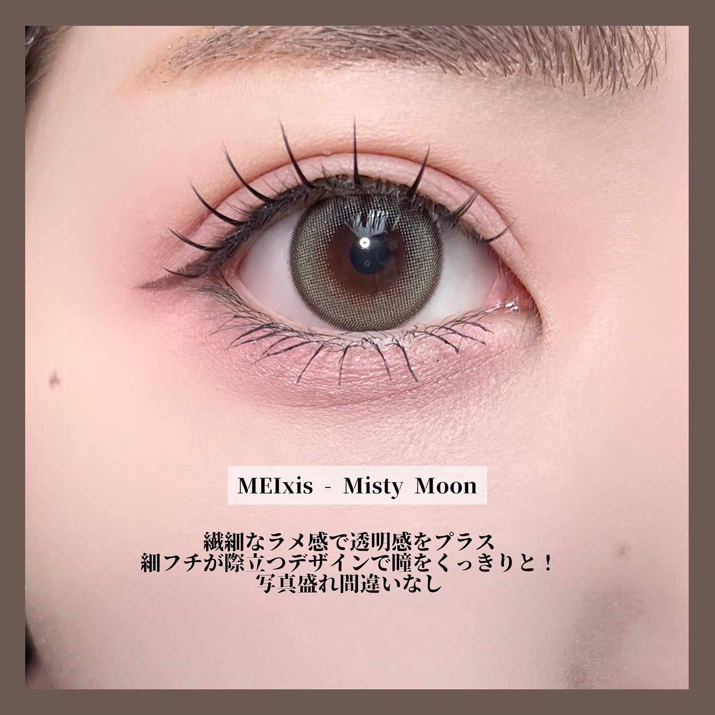 ...浅見めいさんプロデュースラメ入りカラコン💎MEIxis"上品に輝き心を奪う瞳"ラメ感レベルはAquarium→MistyMoon→DesertGlow◾︎MistyMoon細フチ×白みグレージュで透明感のある瞳を演出シルバーグリッターの...