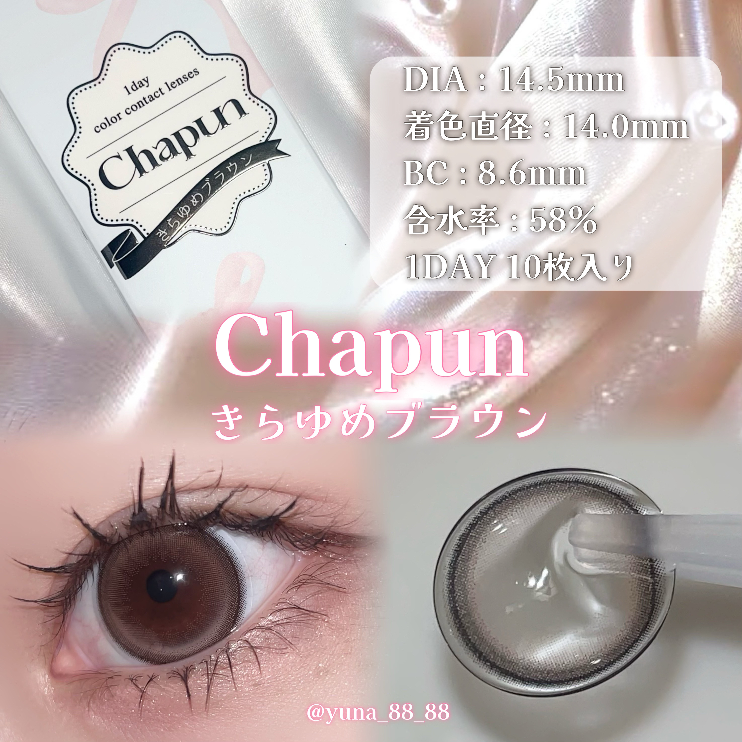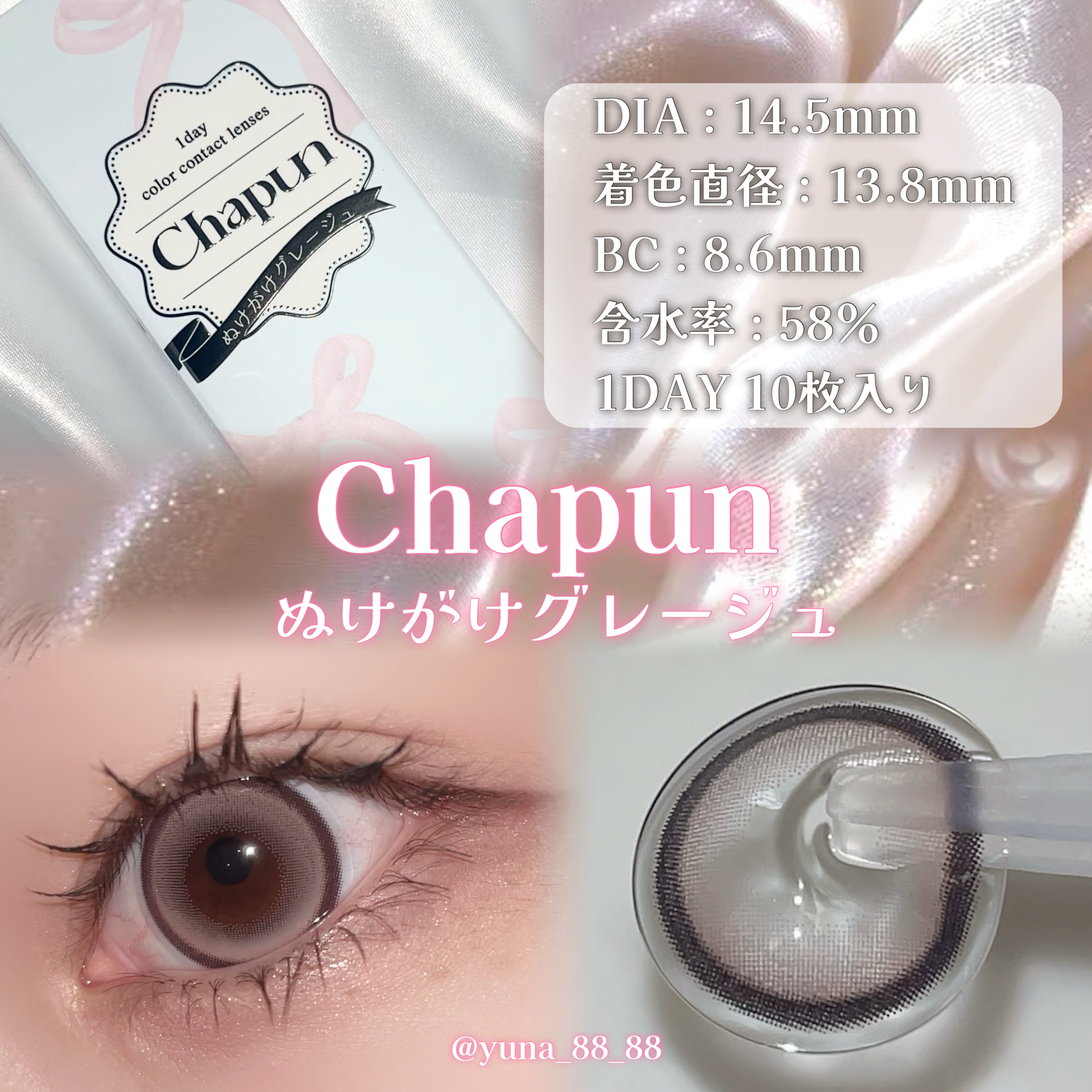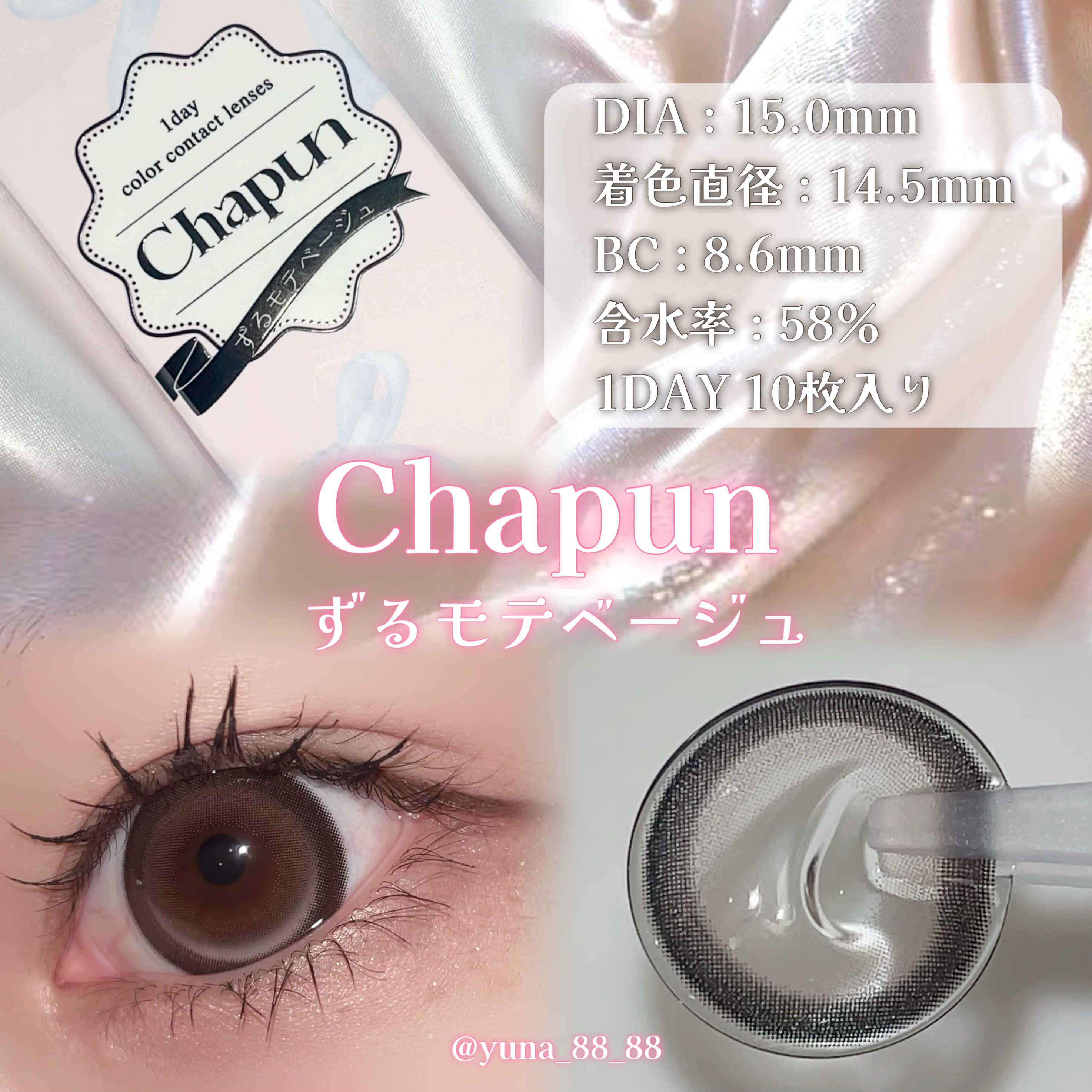 - 齊藤なぎさイメージモデル 可愛いを諦めないちょっぴり小悪魔な女の子たちに向けたカラコンブランド ■華奢フチ×透明感ブラック いとおしブラック DIA:15.0mm 着色直径:14.1mm ゆらめき黒グラデと華奢フチで小悪魔級に盛れちゃううるみレンズ♡ ■くっきり細フチ×きらめきブラウン きらゆめブラウン DIA:14.5mm 着色直径:14.0mm くっきり細フチときらめくちゅるんブラウンであどけなさあふれる ばぶみレンズ♡ ■太フチ×モテ盛れベージュ ずるモテベージュ DIA:15.0mm 着色直径:14.5mm 黒太フチと白っぽベージュでつくる夢中にさせちゃうずるモテレンズ♡ ■ぽってり黒太フチ×うるキラ水光グレー ときとめグレー うるみきらめくピタかわな瞳に♡ DIA:14.5mm 着色直径:14.0mm じんわり滲む極太フチとうるっと光るしずくグレーのカワイイ続く回らない盛れ水光レンズ♡ ■ぽってり黒太フチ×あまキラ水光ブラウン ときとめブラウン あまく輝くピタかわな瞳に♡ DIA:14.5mm 着色直径:14.0mm じんわり滲む極太フチとキラッと光る甘あまブラウンのカワイイ続く回らない盛れ水光レンズ♡ ■細フチ×メルティーグレージュ ぬけがけグレージュ DIA:14.5mm 着色直径:13.8mm 儚げカワイイ細フチとメルティーグレージュでみんなが振り向くぬけがけレンズ♡ カラーコンタクトレンズの不適正使用による眼障害の危険性等などがあります。 ●コンタクトレンズは高度管理医療機器です。不十分な洗浄・消毒など不適切なケアや、長時間・交換期間を超えた装用により、アレルギー性結膜炎、角膜感染症、角膜潰瘍等の重篤な眼障害が発生する危険性があります ●ご使用前に取扱説明書を確認してください 使用上の留意事項 ●眼科医院等を受診してからお求めください ●眼に異常を感じたら直ちにレンズ使用を中止し、お近くの眼科等で診察を受けてください ●医師の指示にしたがってご使用ください ●コンタクトレンズを装用する場合、自覚症状がなくても、眼科医院等での定期検査を受けてください ●レンズに不具合がある場合は使用しないでください