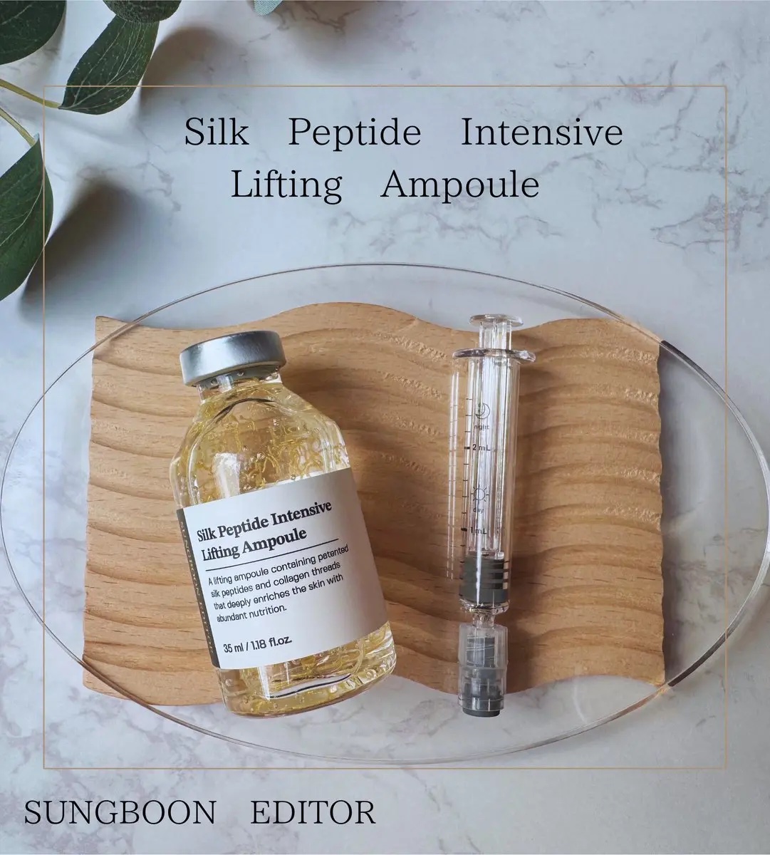 ✴︎#PR#SUNGBOONEDITORSilkPeptideIntensiveLiftingAmpouleコラーゲンでてきた金色の糸が入ったアンプル!とろみがあるのにさらっと使えて良かった◎アプリケーターでお好みの量を吸い上げて使用できるか...
