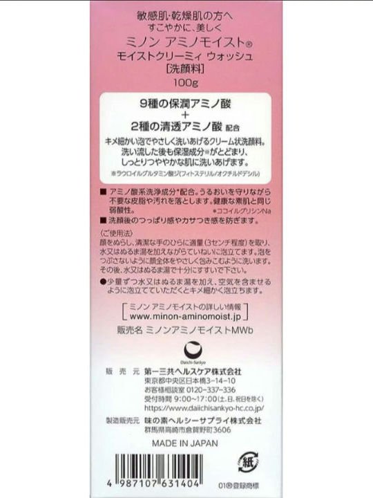 商品詳細情報ミノン アミノモイスト モイストクリーミィ ウォッシュ