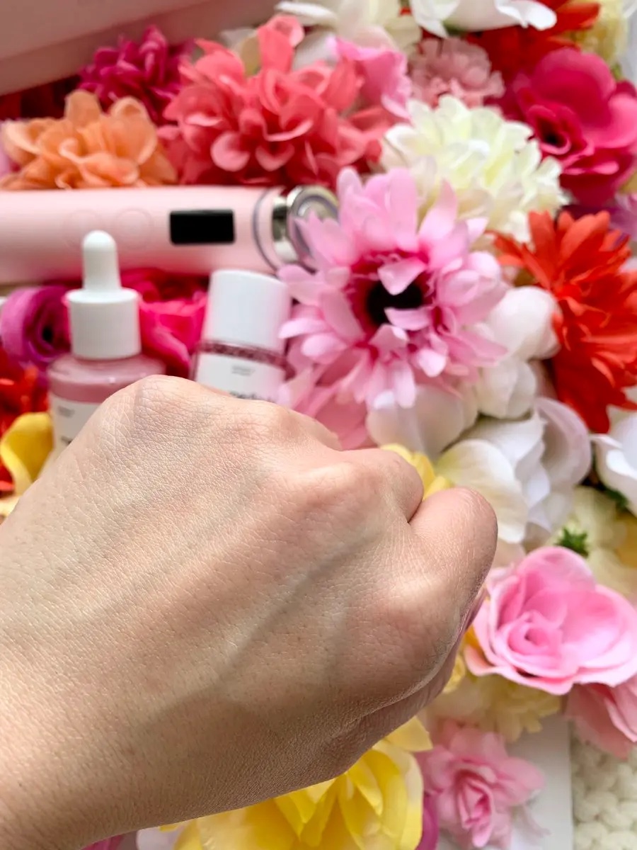 | スルスルっと伸びて、肌になじむとほんのりツヤ感を感じます。 後肌はさらり。 | 詳細を見る | ||