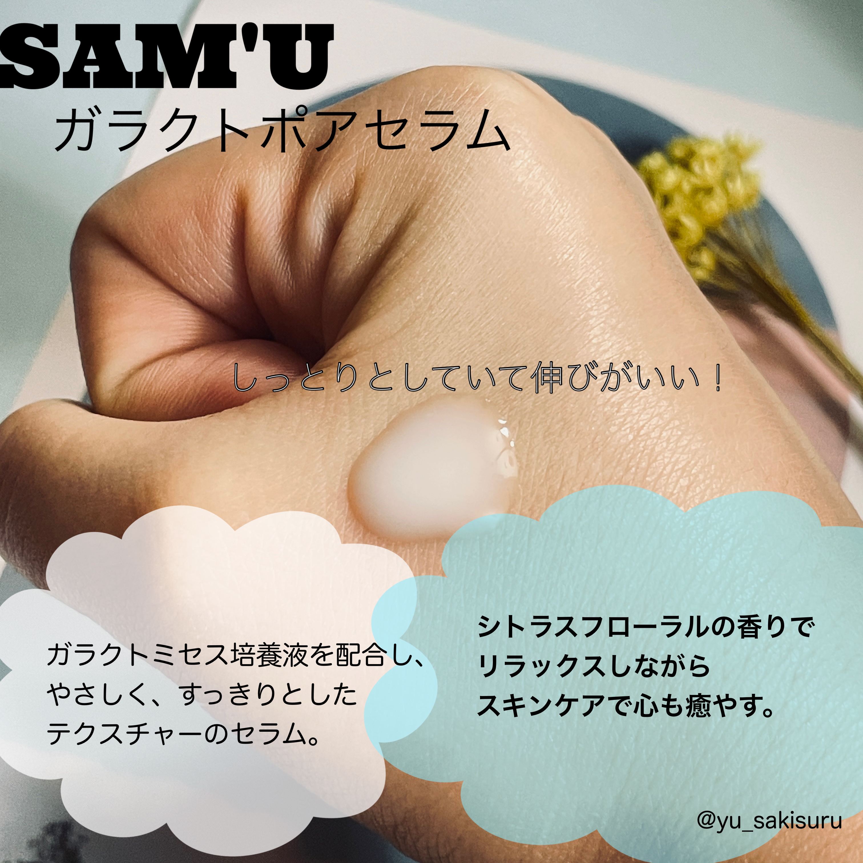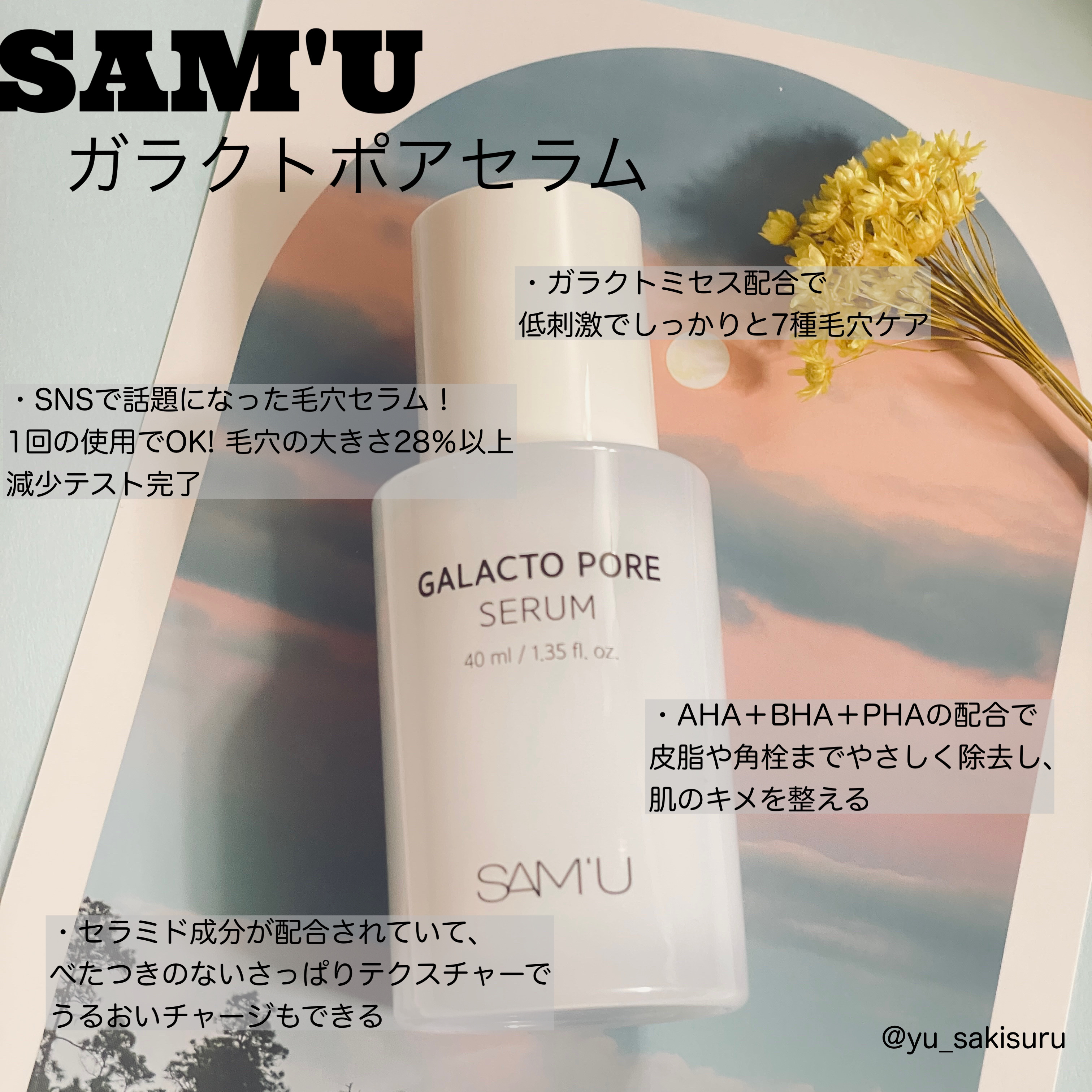SAM'U公式アンバサダーとして@sam_u_jpさまから商品提供いただきました。SAM'Uガラクトポアセラムを使ってみました!こちらの商品は、天然酵素のガラクトミセス核心成分で7種毛穴ケア。AHA+BHA+PHAの配合で老廃物をやさしくケア...