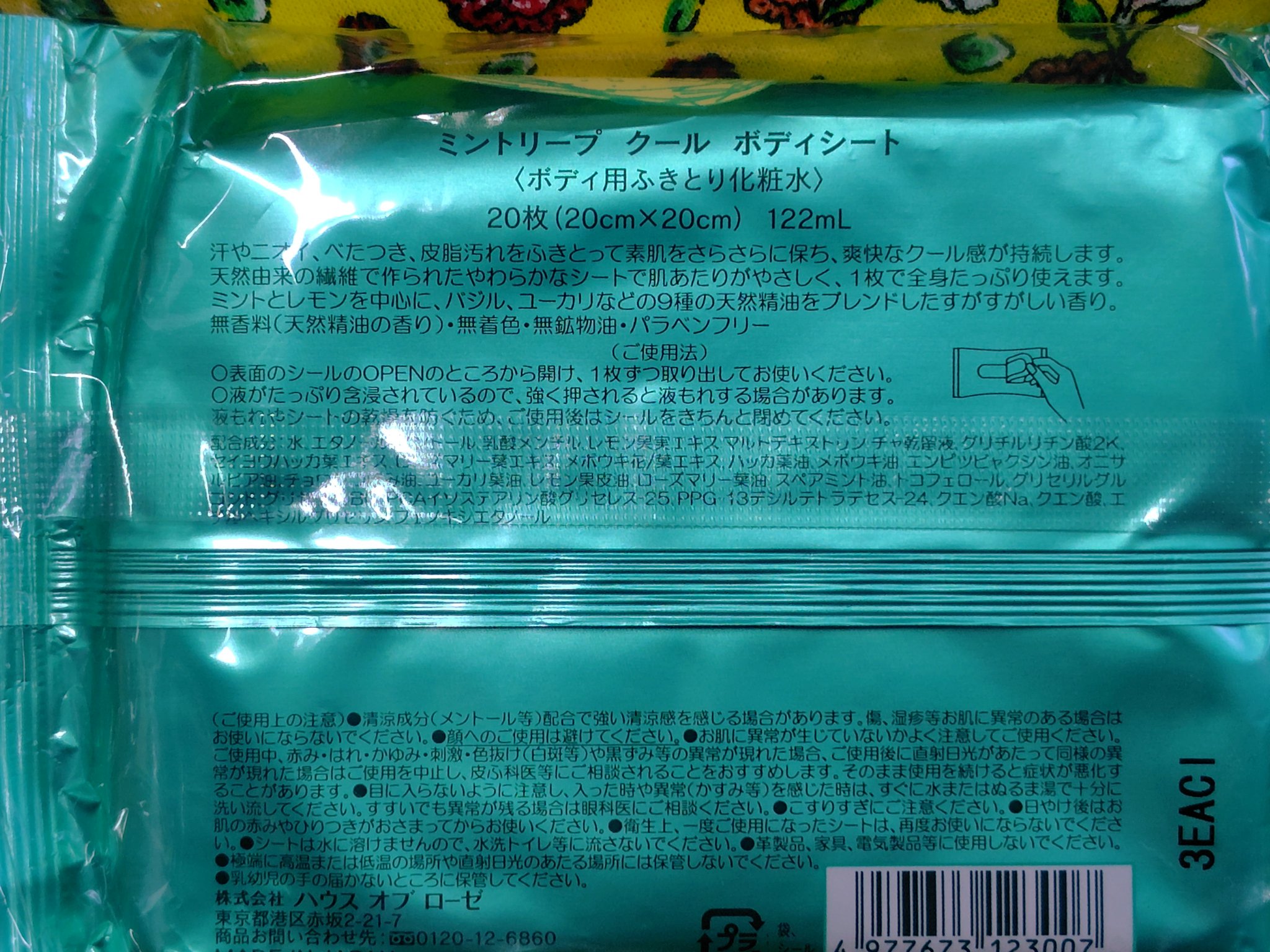 商品詳細情報ハウス オブ ローゼ ミントリープ クール ボディシート