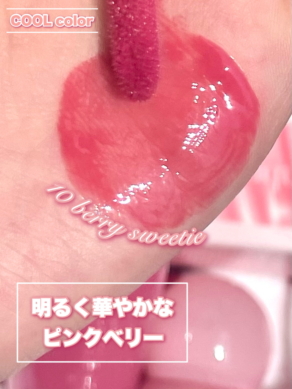 - 【夏新作2カラー登場!】 まるで果実のしずくがそのままリップになったような、みずみずしさと繊細なツヤを詰め込んだ「ジュージーデューイグロウティント」 夏新作で登場する新色「ベリーハート」、「タロミルク」は、透明感とふんわりとした色づきを徹底的にこだわって、何度もテストを重ねて生まれた特別なクールトーンカラー。 ひと塗りで唇をうるおし、重ねても重くならず、果実たっぷり!光をまとうような仕上がりに! - 蜂蜜に漬けた果物のように、うるちゅるふっくらとした果汁粘膜「ジューシーデュイグロウティント」 ミニだけの限定4色 15 ローストロベリー 16 ハミングピンク 17 ロージーシナモン 18 モーブディープス ♡唇に触れた途端、ぷるんと色っぽい果汁コーティング 果汁コーティングがじゅわっと唇に広がり、透明に輝くうるちゅる感を!蜂蜜に漬けた果物のようにぷるんぷるんとした唇を演出するグロウティント ♡イエベ、ブルべに合わせた多彩なカラーバリエーション 14色のカラーバリエーションで単独または、2色レイヤーリングして様々なリップメイクを演出 ♡ティント+リップグロスを一気に塗る効果! ティントの鮮やかな発色とリップグロスのうるうる透明ツヤ感が何度塗り重ねてもべたつかせず、唇にピタッと密着! 2025年11月1日(土)より、Qoo10公式ショップおよび東京フラッグシップストアにて発売予定