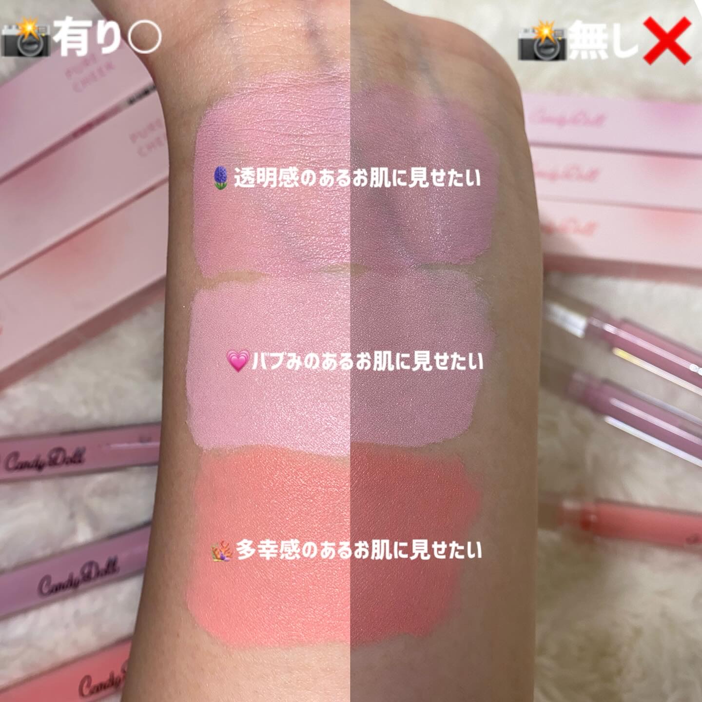 #PRCandyDollさまのモニターキャンペーンにていただきました。キャンディードールピュアリキッドチーク✔︎01ヴィーナスラベンダー✔︎02アイドルピンク✔︎03チャーミーコーラル¥1,650✂📣5/14(水)\WEB限定販売/つーちゃん...