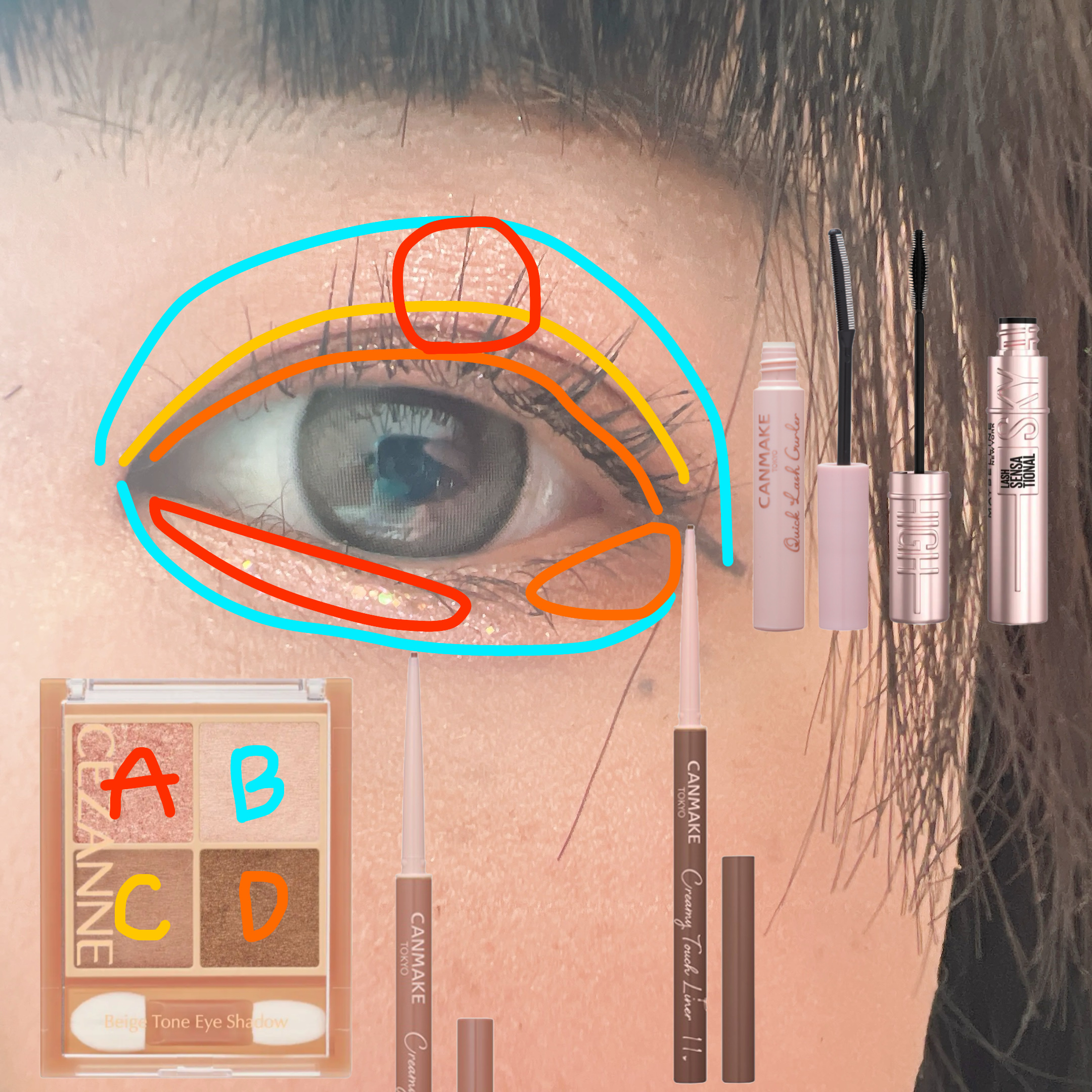目が1.5倍に見えるアイメイク方法👀 完全自己流なので、参考程度に見てくださると嬉しいです♡ キャンメイククリーミータッチライナー 02 ミディアムブラウンを目尻にひく