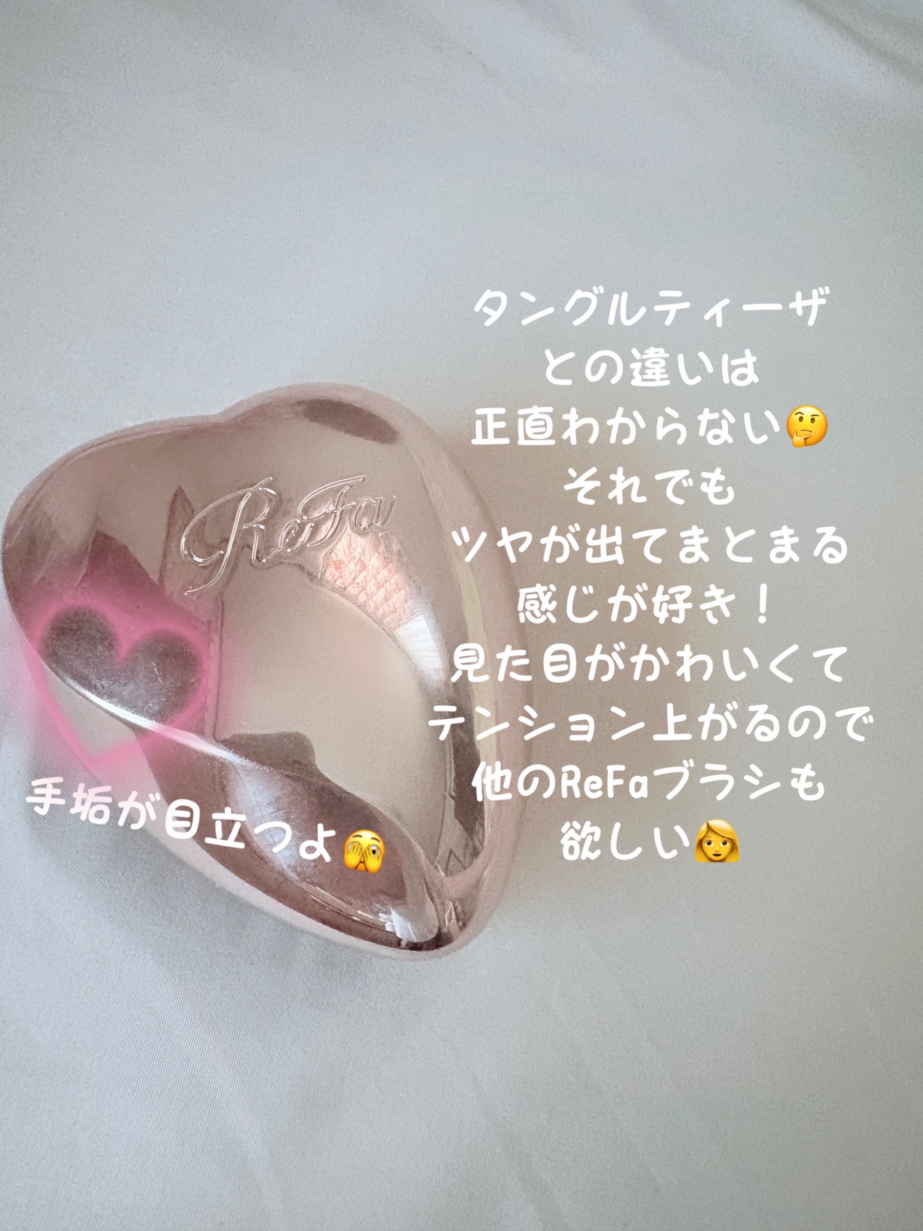ReFaハートブラシ ローズゴールド🩷タングルティーザーが気に入ってずっと使用していましたがクシ先が斜めに曲がってきたのでこちらを購入してみました✨🍒良いところとにかく見た目がかわいい!ツヤも出るししばらくは手触り最高です♪サラサラになります...