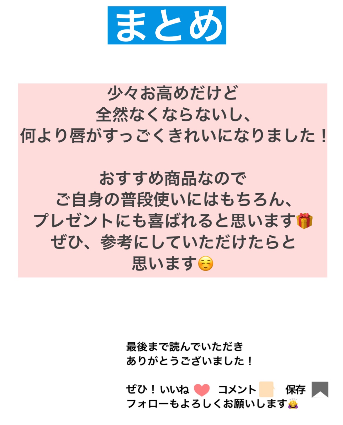 | リップクリーム・リップケアランキング第50位 | 着け心地もスルッと馴染んで、潤い感も長持ちして良かったです( ¨̮ ) | 詳細を見る | |
