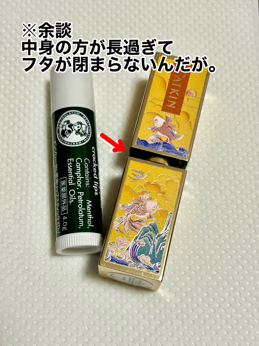 ☆CATKINMOONLIGHTBALMC06CAMELLIA鯉のデザインのCATKINのリップ四角くゴツい感がありキャップが磁石でつくタイプ薄づきで血色感を出してくれる様なカラーでシアー感がすごく良い!(人´∀`*)ナチュラルメイクならこれ...