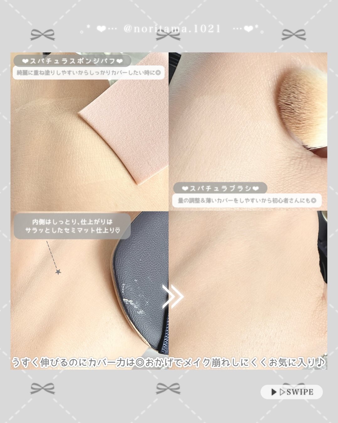 するする伸びよくピタッと肌に密着するクリームテクスチャーで、毛穴・凹凸気になる肌のアラ、シミや色ムラもナチュラルにカバーしてくれました✨ スキンケアのような軽い使い心地で、内側からうるおいがにじみでるようなツヤ感のある仕上がり♡⃛ 私が使った 01 ライトベージュ は肌なじみの良いライトベージュで、ナチュラルメイクならこれ1つでも十分なくらい◎ デパコスで3300円っていうコスパのよさも嬉しいポイント🥹💓