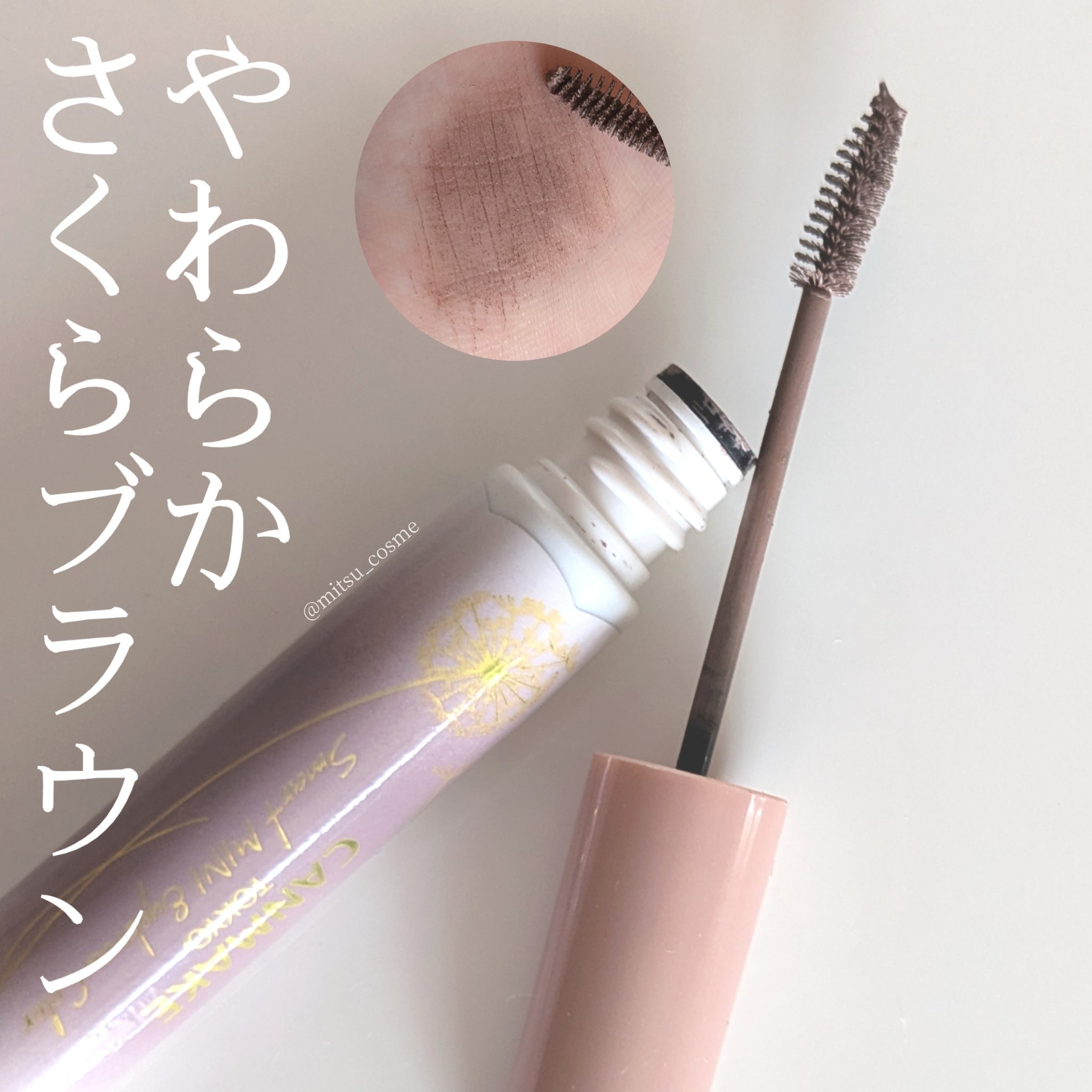 - ミニブラシでとにかく塗りやすい!! ふんわり仕上がる眉マスカラ 小回りの利くミニブラシがとっても塗りやすい眉マスカラ。 毛を1本1本逃さず、ナチュラルに染まります。 パリパリ感もなく、ふんわりとした自眉感のある仕上がりに! 地肌につきにくいのもうれしいポイント♡