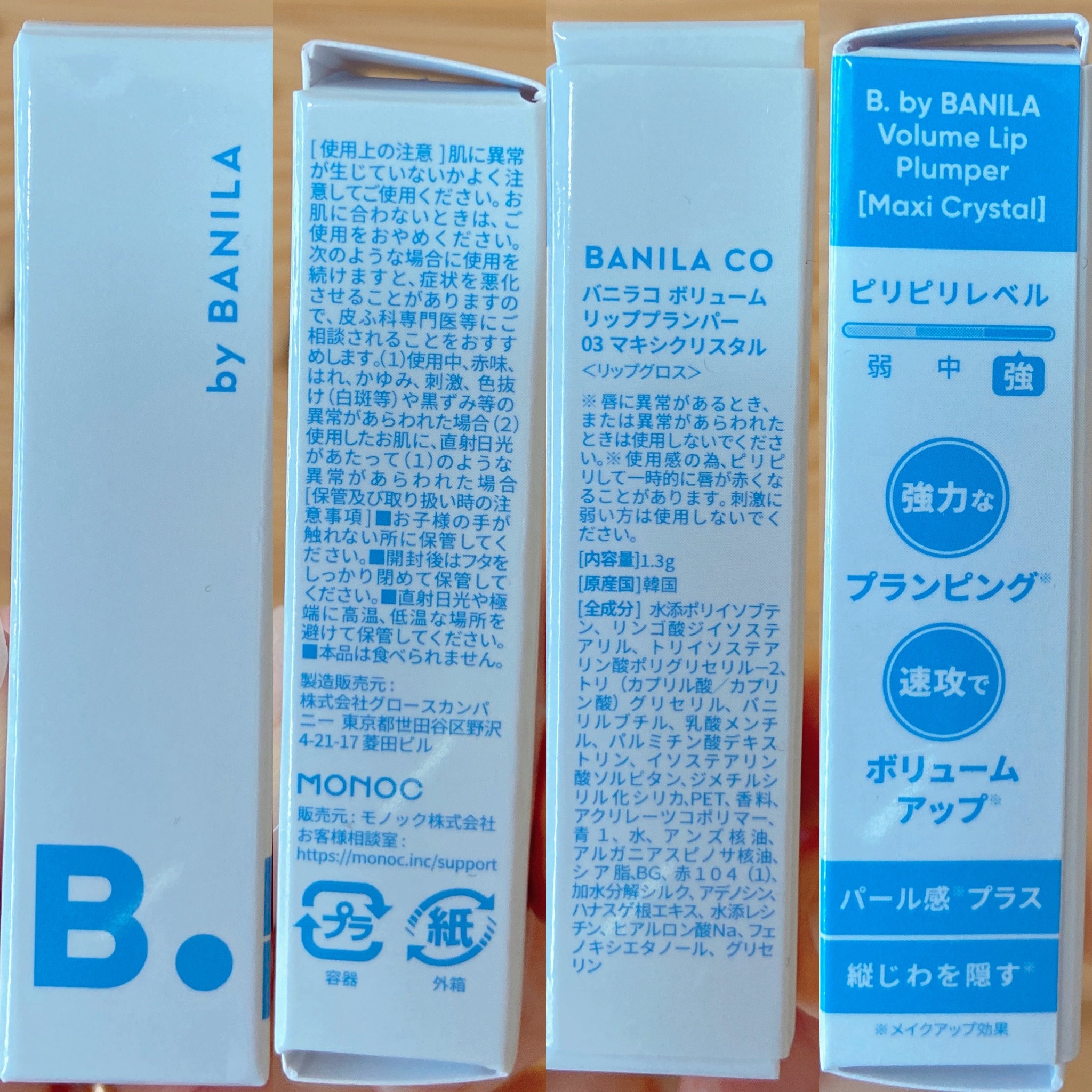 \BANILACO強!リッププランパー/BANILACOボリュームリッププランパー02マキシPLAZAで買い物をした際にいただいたものですミニサイズのリッププランパー痛みレベルは強いとなっていました私が使ってみた感じ程よく強めのピリピリ加減で...