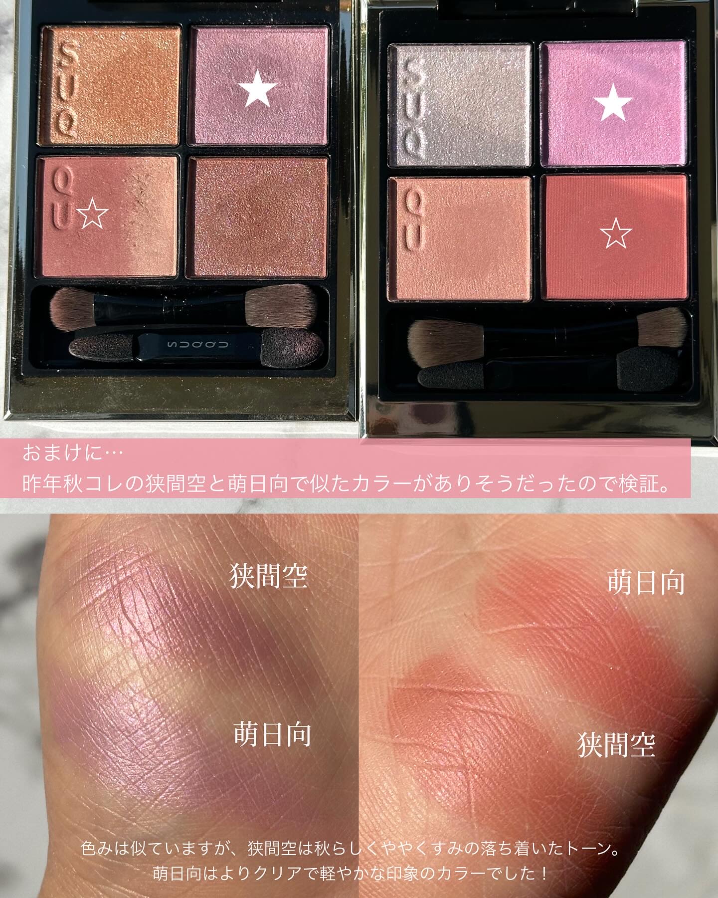 \萌!なブルベパレットにドキがムネムネ💗/▶︎SUQQUシグニチャーカラーアイズ 148萌日向-MOEHINATAもう1色の方!萌日向さま可愛すぎてやばい(๑•ω•๑)先行の抽選予約が全て外れて「ガーン😇」となったのですが、無事にその後の発売...