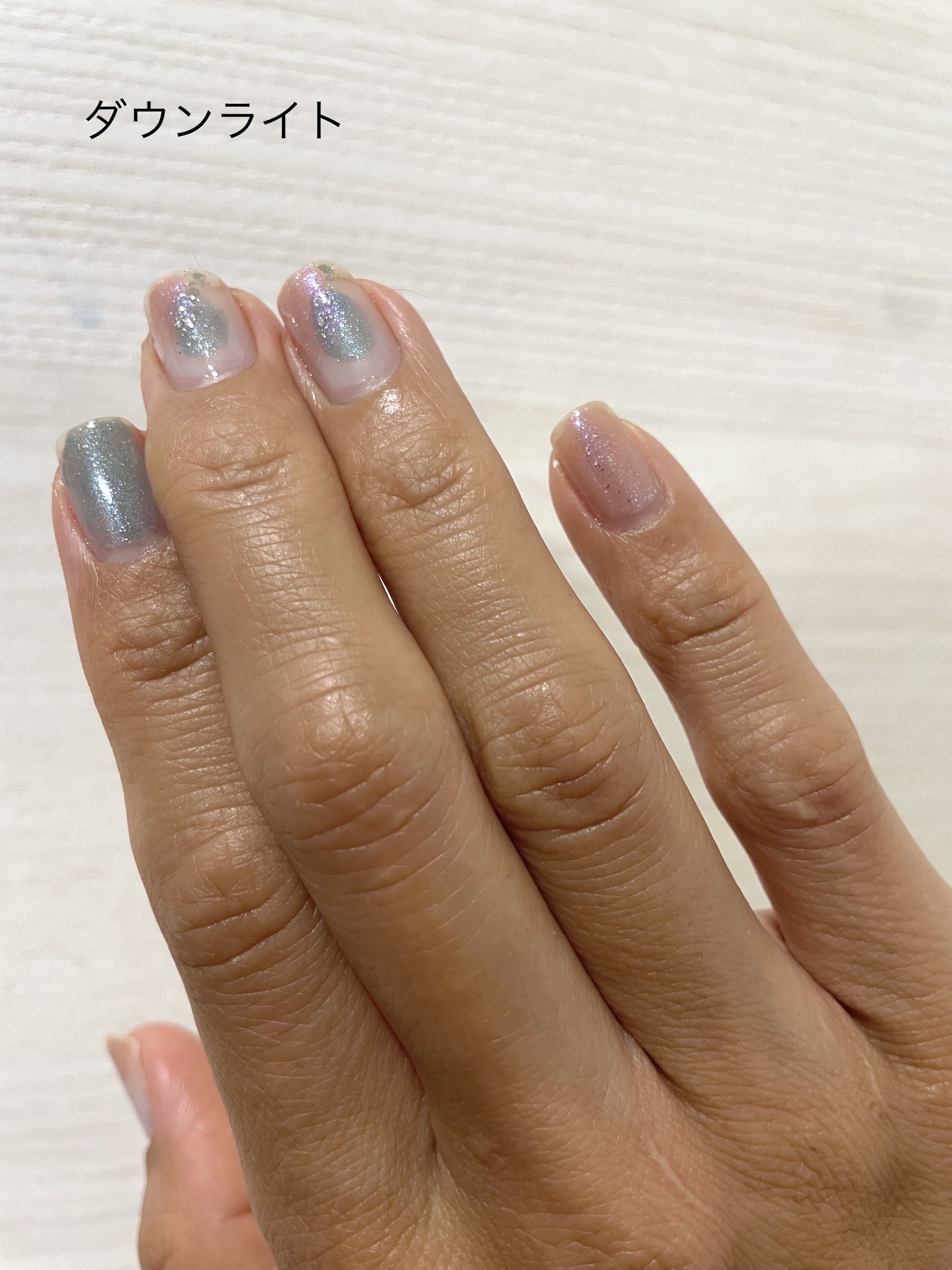 WAKEMAKEネイルガン 48DreamyMomentボトルだとラメ感強いのに自然光や室内灯だと控えめで上品なシアーパープルラメ😳💓ダウンライトや陽が当たるとより綺麗なラメが解る🥹💘(伝わりますかね‥🥺💦)7枚目(1番最後)の写真はLEDラ...