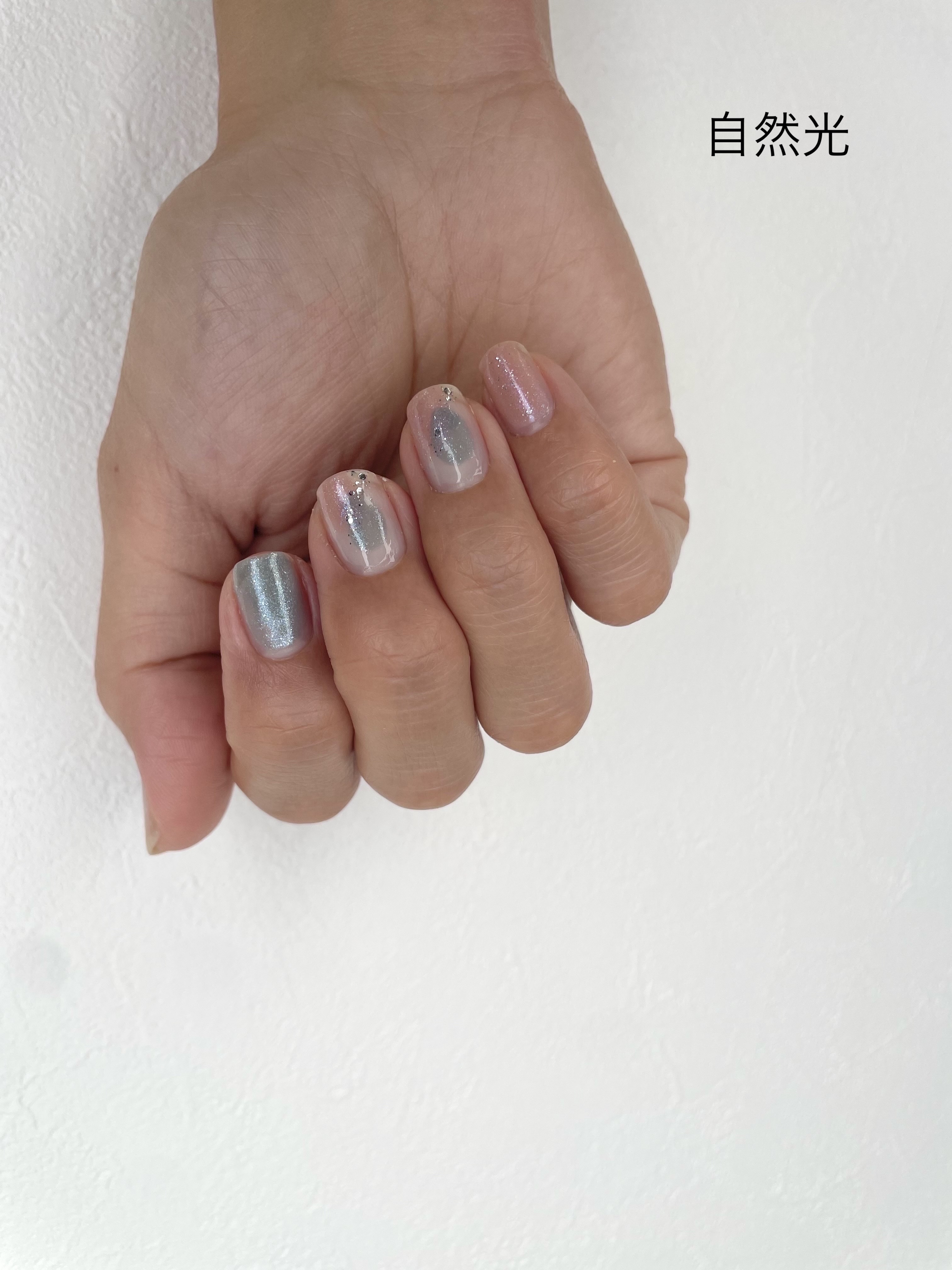 幻想的な夜桜ニュアンス𓂃。❀·̩͙꙳。 淡く儚いピュアピンクの〚04 ペールピンク〛 微細多色ラメが煌めく絶妙くすみブルー〚E011〛とあわせて夜桜ニュアンスに❀.*゚