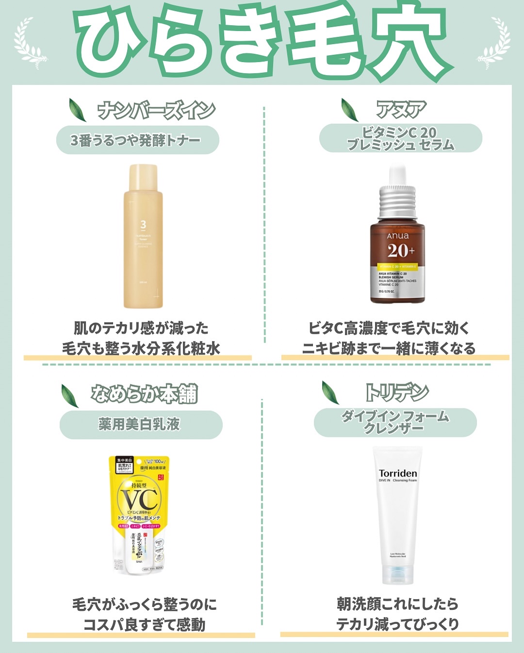 ナンバーズインってとても人気ですよね! 1番〜9番ってめっちゃ番号があるんだけど何が自分に合ってるか分からないですよね... ドラッグストアで結構置いてるので、買う時にどれがいいか悩んだ時の参考にしてみてね🫶 絶対に老けない肌作り! ◻️-10歳若返り老けない肌に🇰🇷 ◻️ノーファンデで褒められるすっぴん美人に✨