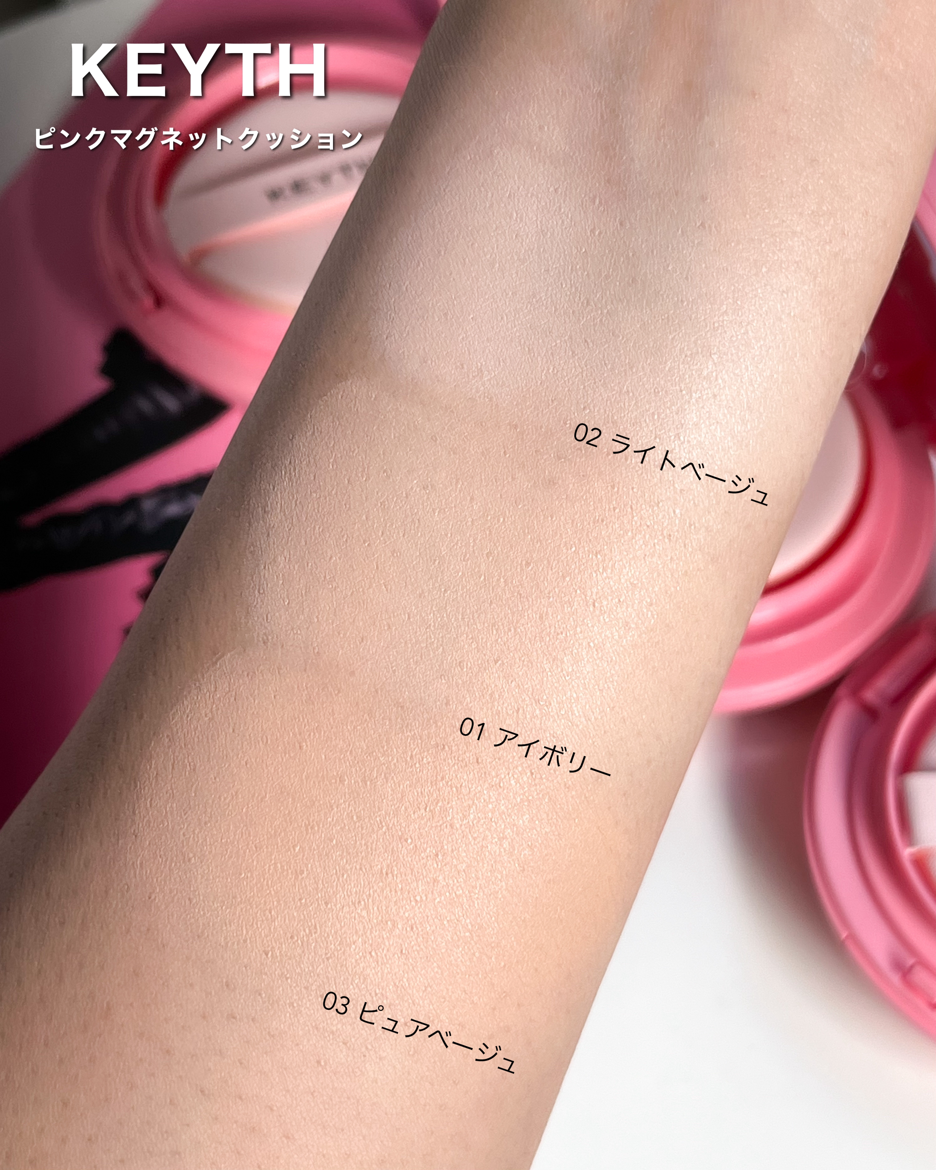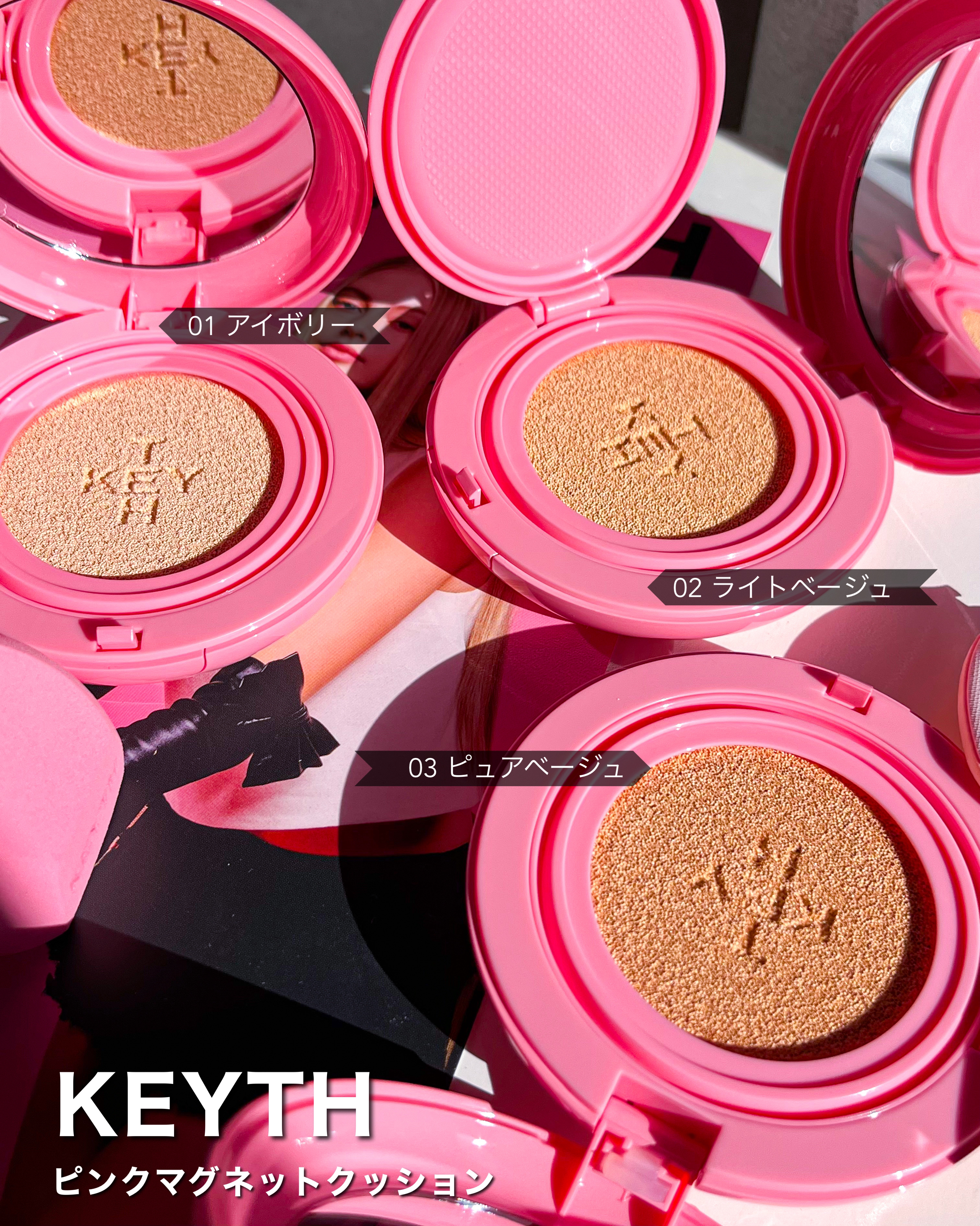 \ほどよく艶めく水光肌/【KEYTHピンクマグネットクッション】☑️SPF40/PA++・01アイボリーベージュ 明るく輝くアイボリーベージュ。・02ライトベージュクリーンでニュートラルなライトベージュ。・03ピュアベージュ自然にフィットする...
