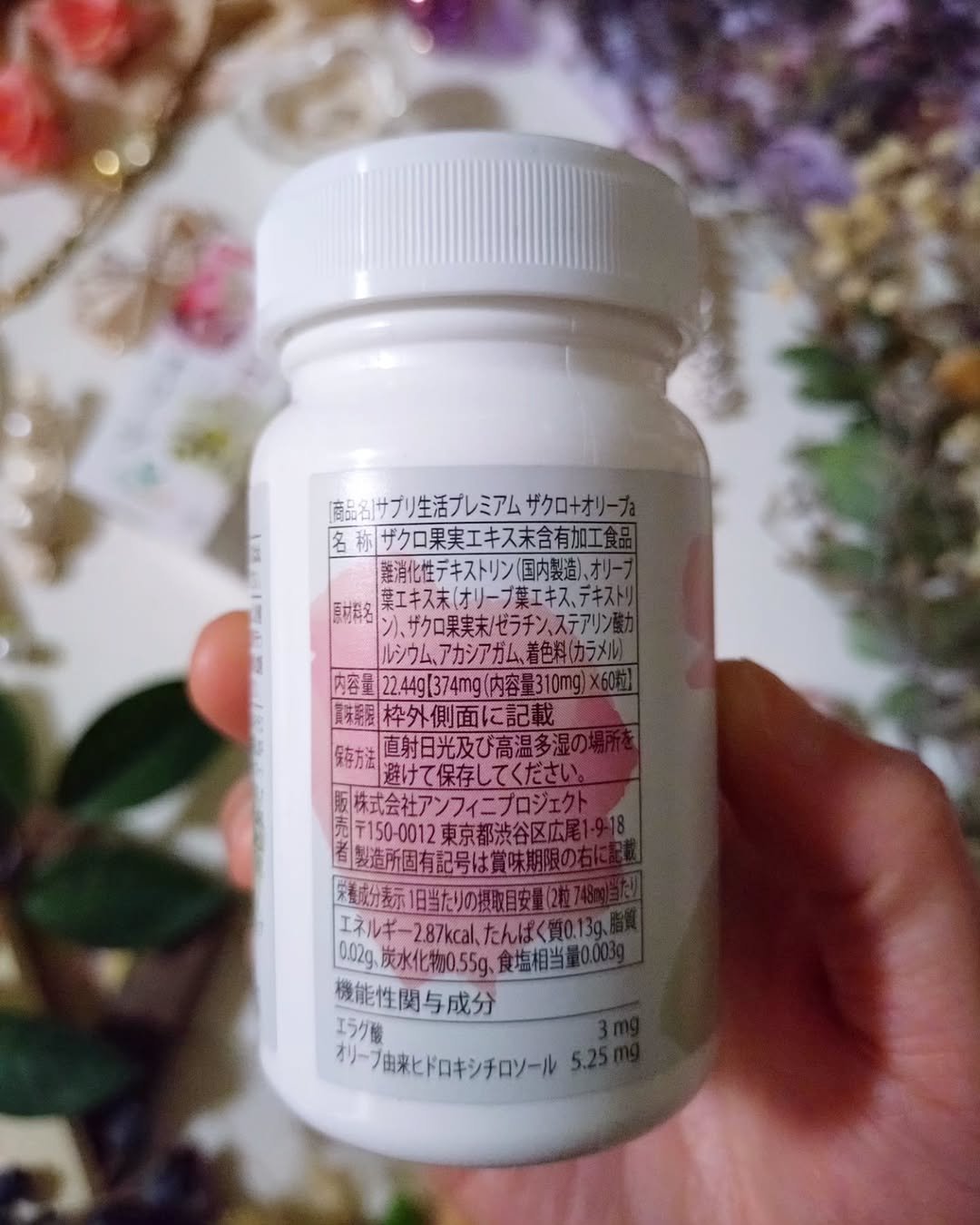 - <ザクロ+オリーブ> ステアリン酸カルシウム、デキストリン)、難消化性デキストリン(国内製造)、着色料(カラメル)、アカシアガム、オリーブ葉エキス末(オリーブ葉エキス、ザクロ果実末/ゼラチン