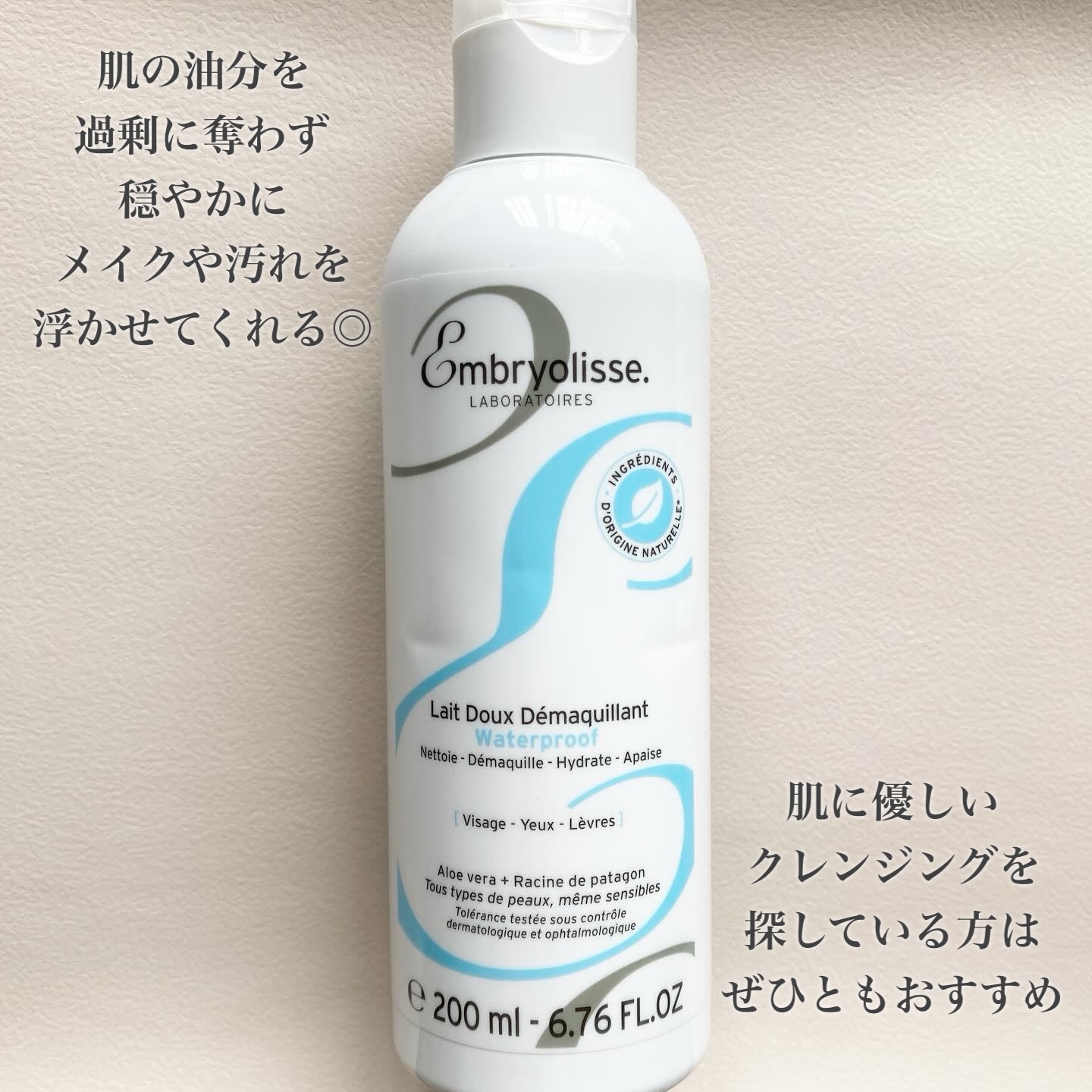 - 保湿成分を豊富に含んだ処方の「アンブリオリス ジェントル クレンジングミルク」は肌にうるおいを与えながら、肌表面の汚れやウォータープルーフメイクも落とします。乳液のようなやわらかな使い心地でしっとりとした肌に。 1 本で洗顔・メイク落とし・うるおいケア 1. 肌汚れ、外気などによる汚れを除去。 2. マスカラなど落としにくいウォータープルーフメイクも落とし、面倒なダブル洗顔は不要。 3. 保湿効果に優れたミルクで、肌をやわらげ、デリケートな肌もうるおいのあるしなやかな肌へ。 こんな方におすすめ : ・しっかりメイクの方 ・肌に負担をかけたくない方 ・敏感肌(※)を含むすべての肌タイプの方 ※すべての方に肌トラブルがおきないわけではありません。 ※成分・処方はそのままに、2023年5月よりパッケージデザインを順次リニューアル