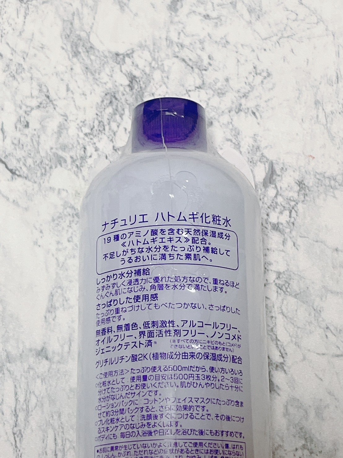 - 肌にうるおいを与えてスキンコンディションを整える、天然保湿成分ハトムギエキス配合の化粧水です。 みずみずしく浸透力に優れた処方なので、重ねるほどぐんぐん肌になじみ、角質層を水分で満たします。 たっぷり肌に重ねづけしてもべたつかないさっぱりした使用感なので、スキンケアのはじめにたっぷり使ってください。 肌がひんやりしてきたら十分に水分がなじんだサインです。 ■基本は化粧水として スキンケアのはじめにたっぷり使ってください。 500円玉大の量を3回重ねづけするのが目安です。 肌がひんやりしてきたら十分に水分がなじんだサインです。 ■ローションパックでさらにうるおい コットンやフェイスマスクにたっぷり含ませて約3分間パックすると、角質水分量がさらに高まります。 ■プレ化粧水として 洗顔後すぐにつけることで、その後につけるスキンケアのなじみをよくします。※角質層まで ■ボディにも べたつかないので、毎日の入浴後や日差しを浴びた後などのボディのスキンケアにもおすすめです。