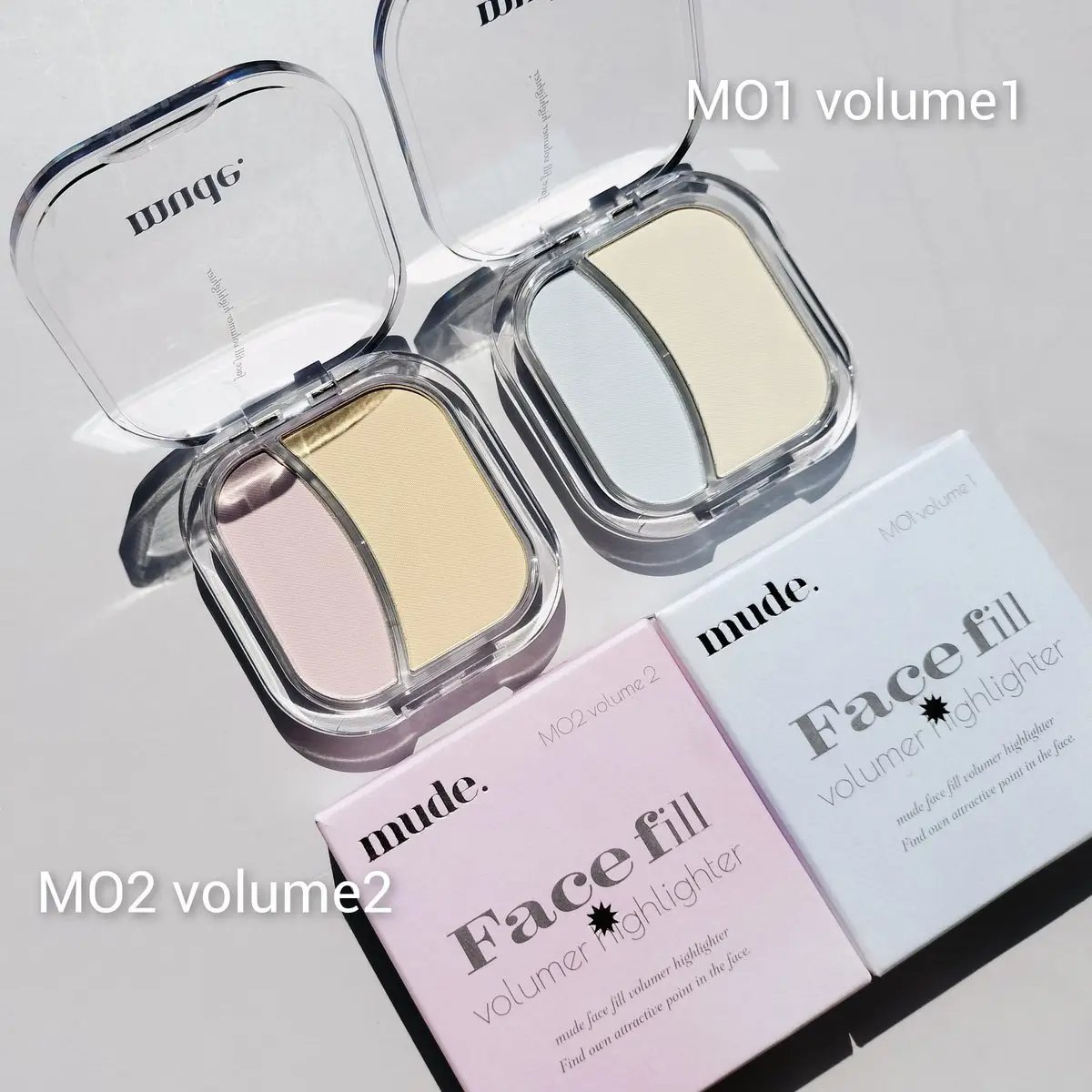 ◽️◽️◽️mudeの新作にときめきが止まらない🥹【フェイスフィルボリューマーハイライター】シルキーな遍光ビームを当てたようにどの角度から見ても眩しく煌めくパールハイライターくすみを飛ばしてナチュラルな立体感を演出してくれる錯覚マットハイライ...