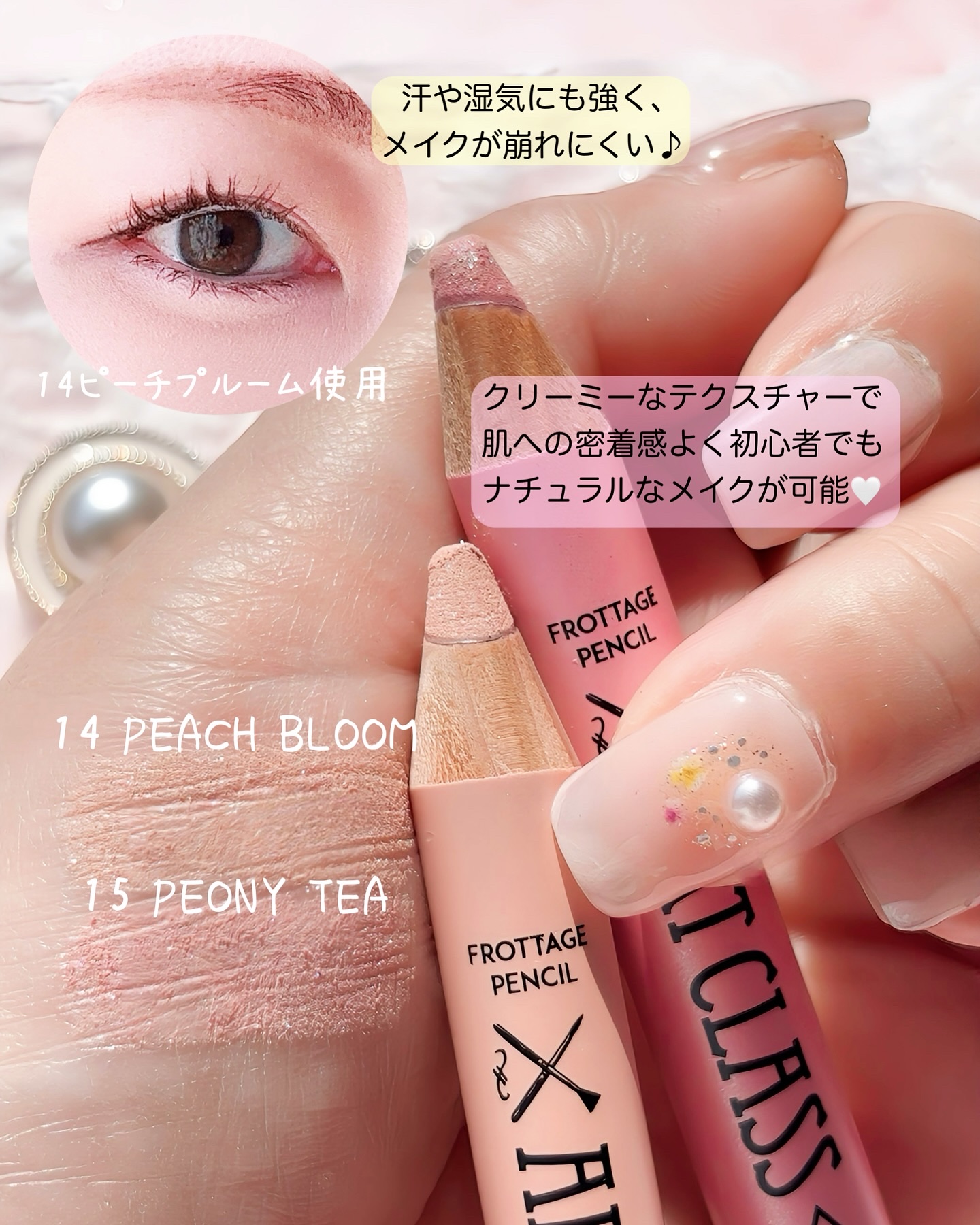 too cool for schoolのフロッタージュペンシルが とても優秀でした♡カラーは#14 ピーチプルーム #15 ピオニーティー ♡スルスル塗れて密着度が高く、涙袋メイクだけでなく色んな用途に使えてとってもおすすめ!さっとなぞるだけ...