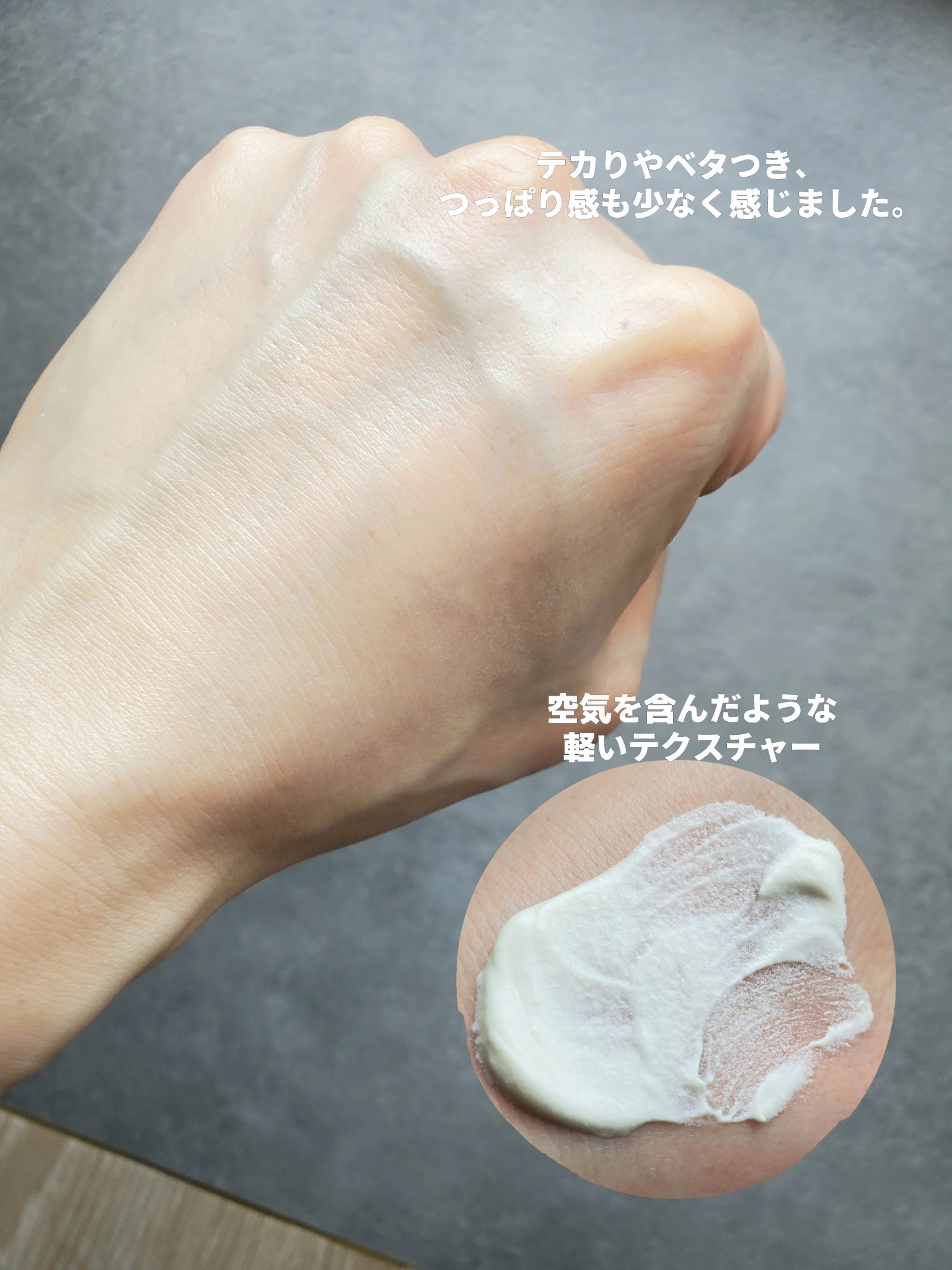フィラシード™、セラミド、ヒアルロン酸の3重保湿でうるおいキープ! 48時間乾かない、潤う肌のコンセプトの通り! またクリームを広げると小さなカプセルが見られます。 硬すぎることもないので、広げるうちに自然になじんでいき、知らない間にうるおいのヴェールをまとったようでした! 肌刺激テストも実施しており、肌のことを考えて、敏感肌の方でも使える保湿クリームでした。