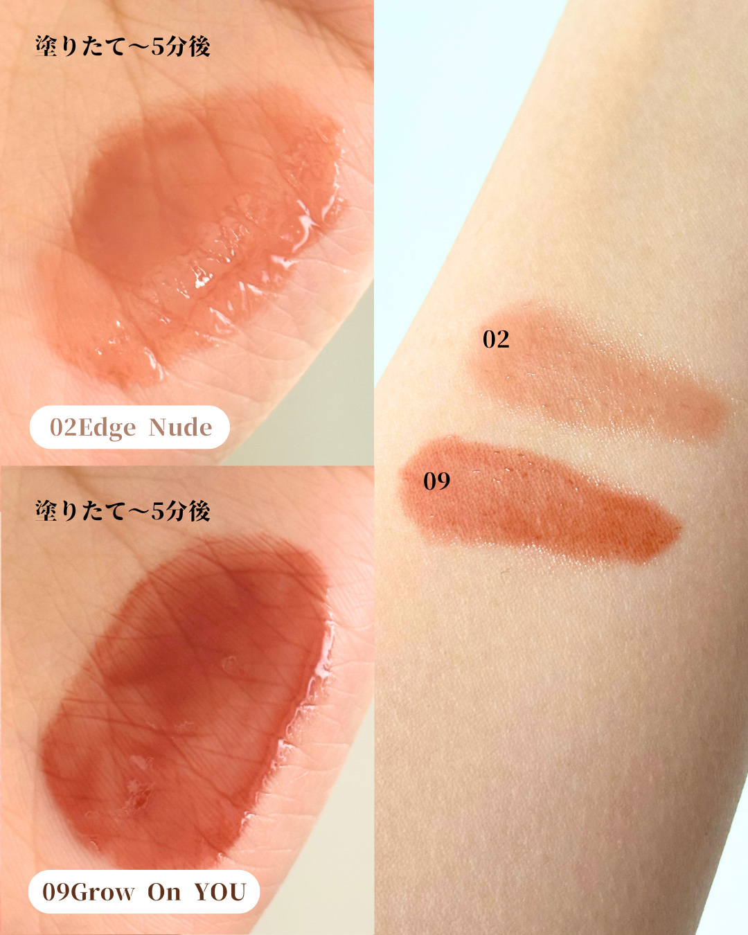- ベタつかずグラッシーなボリューム&ツヤグロス ベタつかないテクスチャーでスッと伸びるソフトな使用感 ガラスのようなグラッシーなツヤでボリューム感のなる唇を演出 インクの鮮明なカラー感はそのまま!※当社調べ、個人差があります。 <02 エッジ ヌード(EDGE NUDE)> 肌トーンに自然と馴染むベーシックな雰囲気のエッジヌード <03 チリング ロージー(CHILLING ROSY)> ローズにクールレッドを1滴ポタッ、トーンダウンした奥深いローズカラーのチリングロージー <06 メイド イット(MADE IT)> レッドを一滴加えたトレンディーなハニーブラウン <08 ラブ オブ フェイト(LOVE OF FATE)> 毎日バッグに入れて持ち歩きたいヌーディーなデイリーピンク <09 グロウ オン ユー(GROW ON YOU)> ムードを完成させる奥深いチョコレートブラウン <12 コンフィー コージー(COMFY COZY)> あたたかさたっぷりソフトピンクコーラル <13 ゲット ハッピー(GET HAPPY)> ブルべカラーを集めたクールなうさぎ舌リップ <14 ファインド ジョイ(FIND JOY)> 華やかに見せてくれるチェリーピンク <P01 ビーオンファイア(BE ON FIRE)> 輝くピンクパールとプランピング成分*でボリューム感UP *バニリルブチル、乳酸メンチル(皮膚コンディショニング剤)
