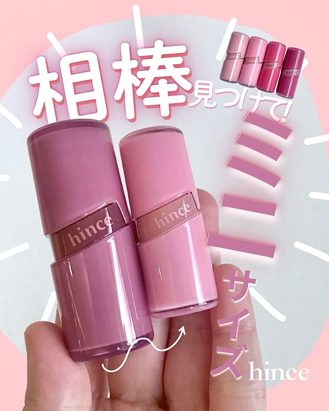hince様から商品提供をいただきました☆ベストセラーリップのミニサイズバージョン!透明感あふれるじんわり澄んだ発色で自然な光沢感ある仕上がりにしてくれるそうです◎コンパクトな可愛いサイズ感で全25色の豊富なバリエーションも良いですね!透明感...