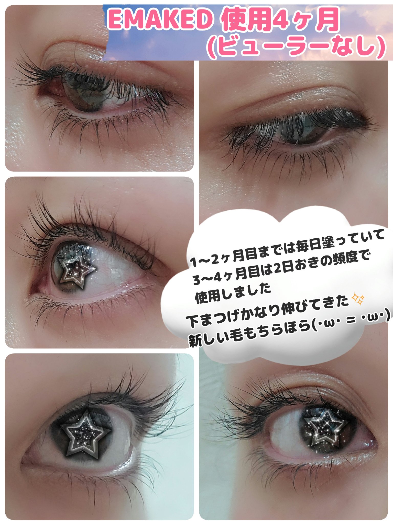 ~EMAKED✨𖠶ˬ𖠶✨~使用開始から丸4ヶ月が経ちましたのでまた経過を記録に残したいと思います🙇♂️~使用頻度~使用2ヶ月までは、とにかく変化が楽しくて欠かさず塗ってました🤣3~4ヶ月目は塗らずに寝落ちした日も何度かありましたが、それでも...