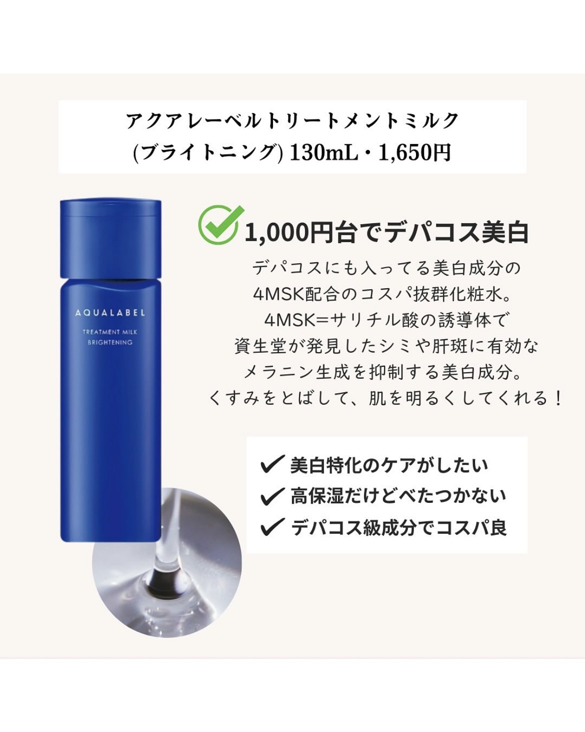 アクアレーベル トリートメントミルク(ブライトニング) しっとり | 1,650円 |