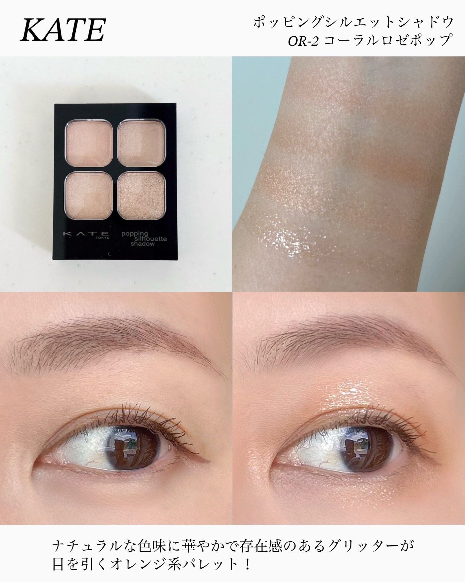 【底見え溺愛女によるKATE新作徹底比較レビュー✨】★KATEポッピングシルエットシャドウOR-1 アプリコットポップOR-2 コーラルロゼポップ¥1,540✼••┈┈••✼••┈┈••✼••┈┈••✼••┈┈••✼KATEの名作ポッピングシ...