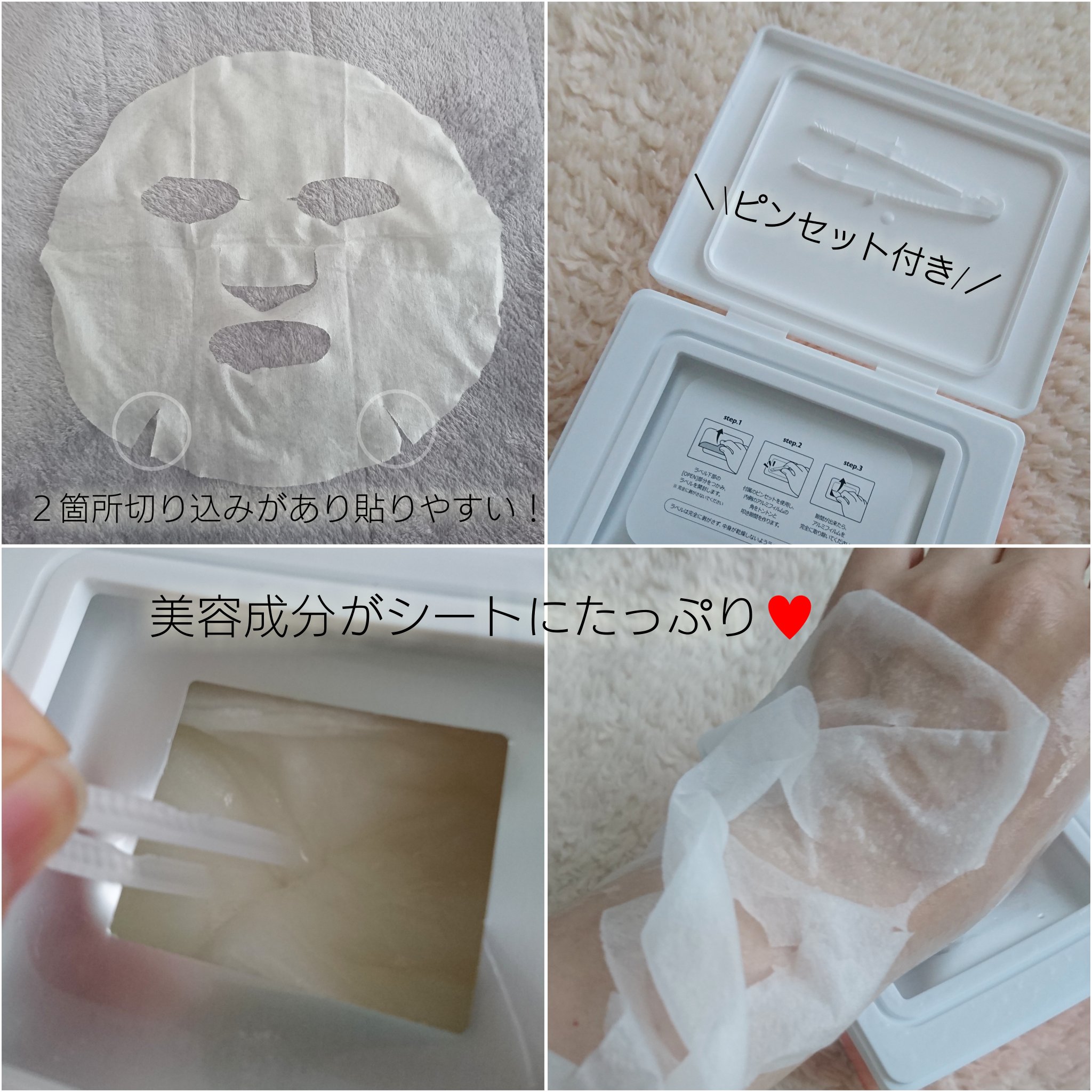 | クリーミーな感じのエッセンスがたっぷりしみこんだシート。リッチな使用感ですがべたつきなし! | 詳細を見る | ||