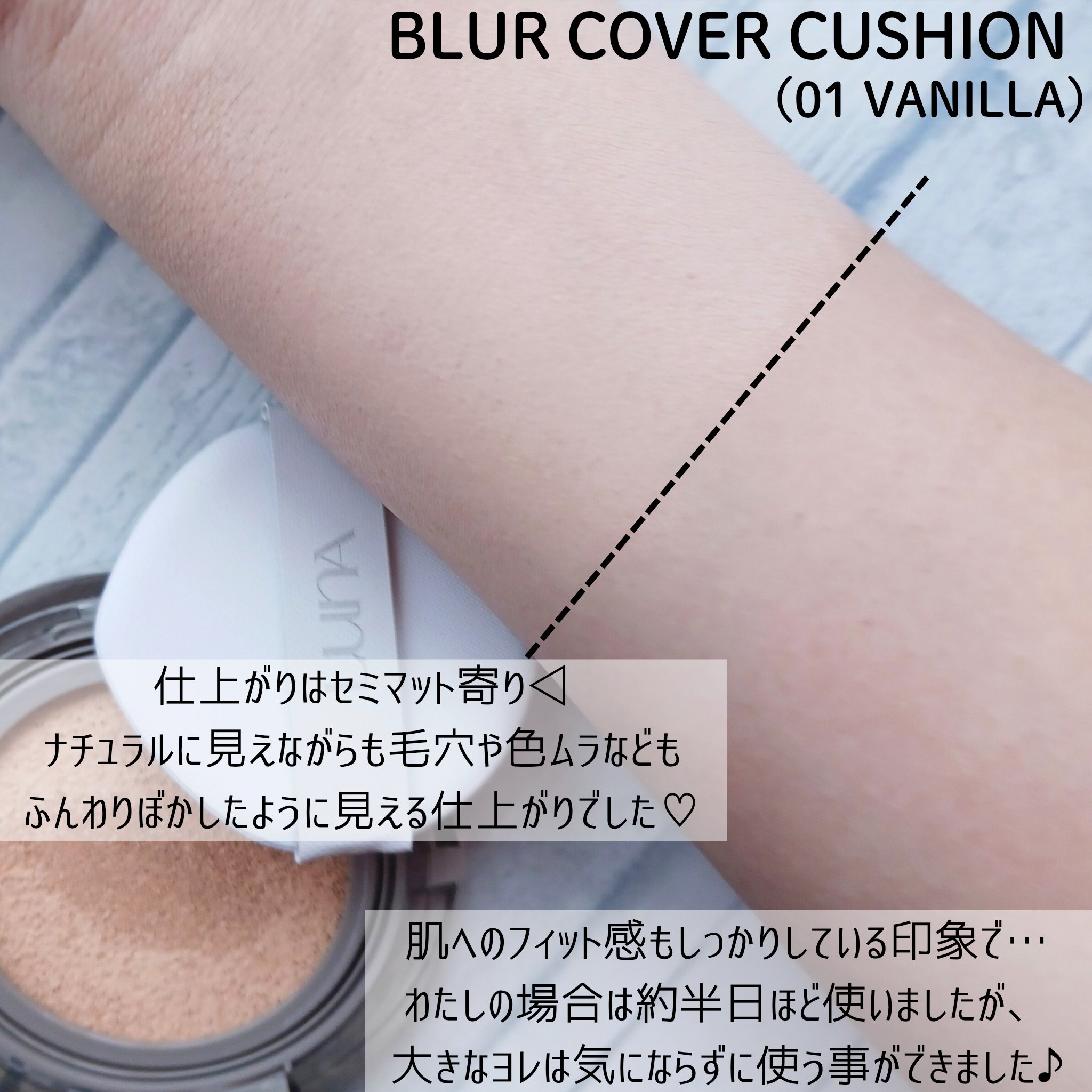 LUNAブラーカバークッション01VANILLA薄づきなのに小さいシミ、毛穴とか気にならなくて加工したような肌になれる☺️重ね塗りしてもキレイに仕上がるからメイク直しにも◎1日つけてみたけど乾燥しなくてつけ心地よかったよ〜🥹パフは...
