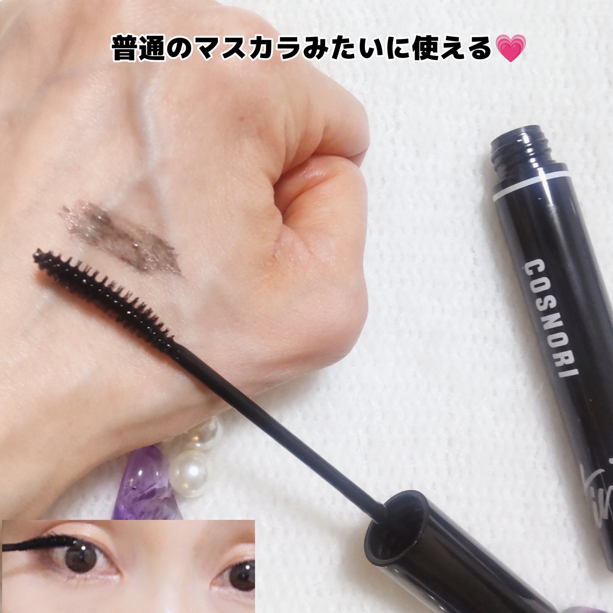 COSNORI☑︎ロングアクティブアイラッシュセラムボールチップブラシとマスカラブラシが一緒になっているブラシ型。まつ毛の目尻や目頭など細かい部分にも塗りやすく、刺激なく使えました☺️☑︎アイラッシュティンティングセラム日中マスカラのように塗...