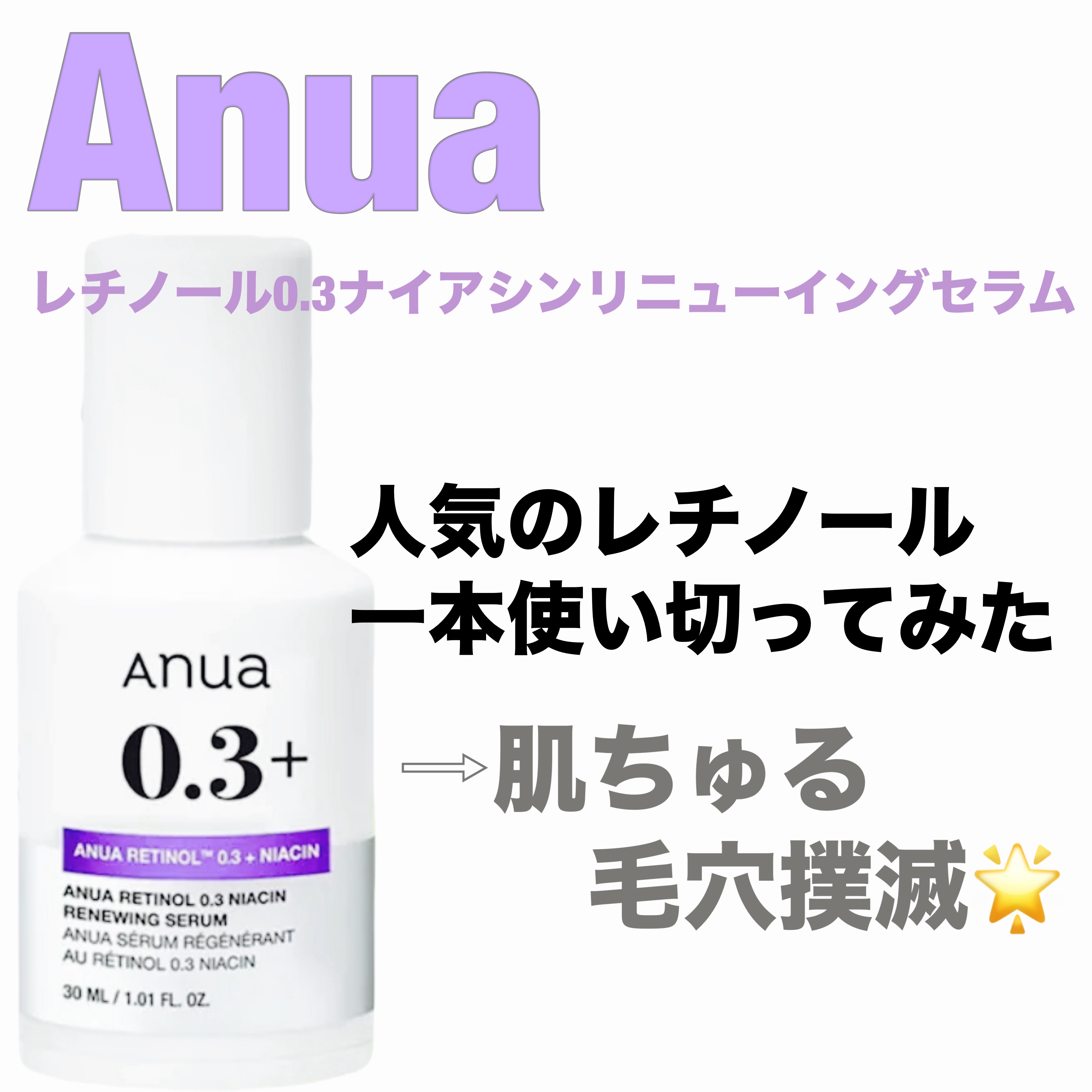 レチノールで有名なAnuaの美容液です! レチノールといえばA反応が出る人もいるなど攻めのスキンケアとして有名ですが、このAnuaのレチノールは刺激が少なく肌が弱い方でも使いやすいです👍 ナイアシンアミドも配合されているので美白ケアも同時にできるのもおすすめポイントです! しばらく使っていますが、肌がツルピカになってきた気がします✨ レチノール初心者の方はぜひ試してみてください!