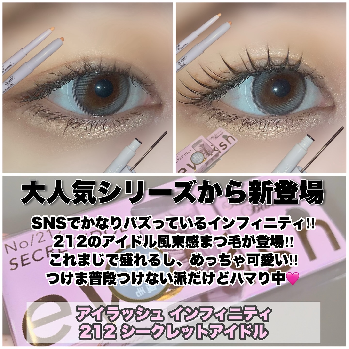 ミッシュブルーミンに束感つけまつげとコスメラインが新登場♡涙袋ダズリングデュオアイスティック02ハチミツミルフィーユ2wayペンシルでキラキラグリッターと部分補正用コンシーラーでぷっくり涙袋を作れるアイスティック♡スルスルなめらかな描き心地が...
