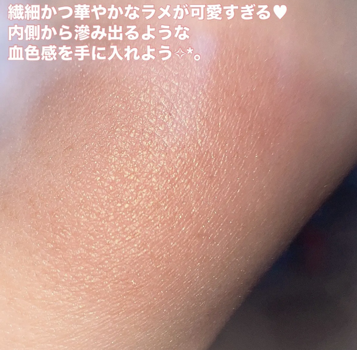 ゴールドラメ×コーラルオレンジのチークが可愛すぎる♡頬に乗せてみると火照ったようなかわいらしい少女に大変身✨透け感のあるお色なので優しげな雰囲気になります!繊細かつ華やかなラメが可愛すぎる♥内側から滲み出るような血色感を手に入れよう✨なんとあ...
