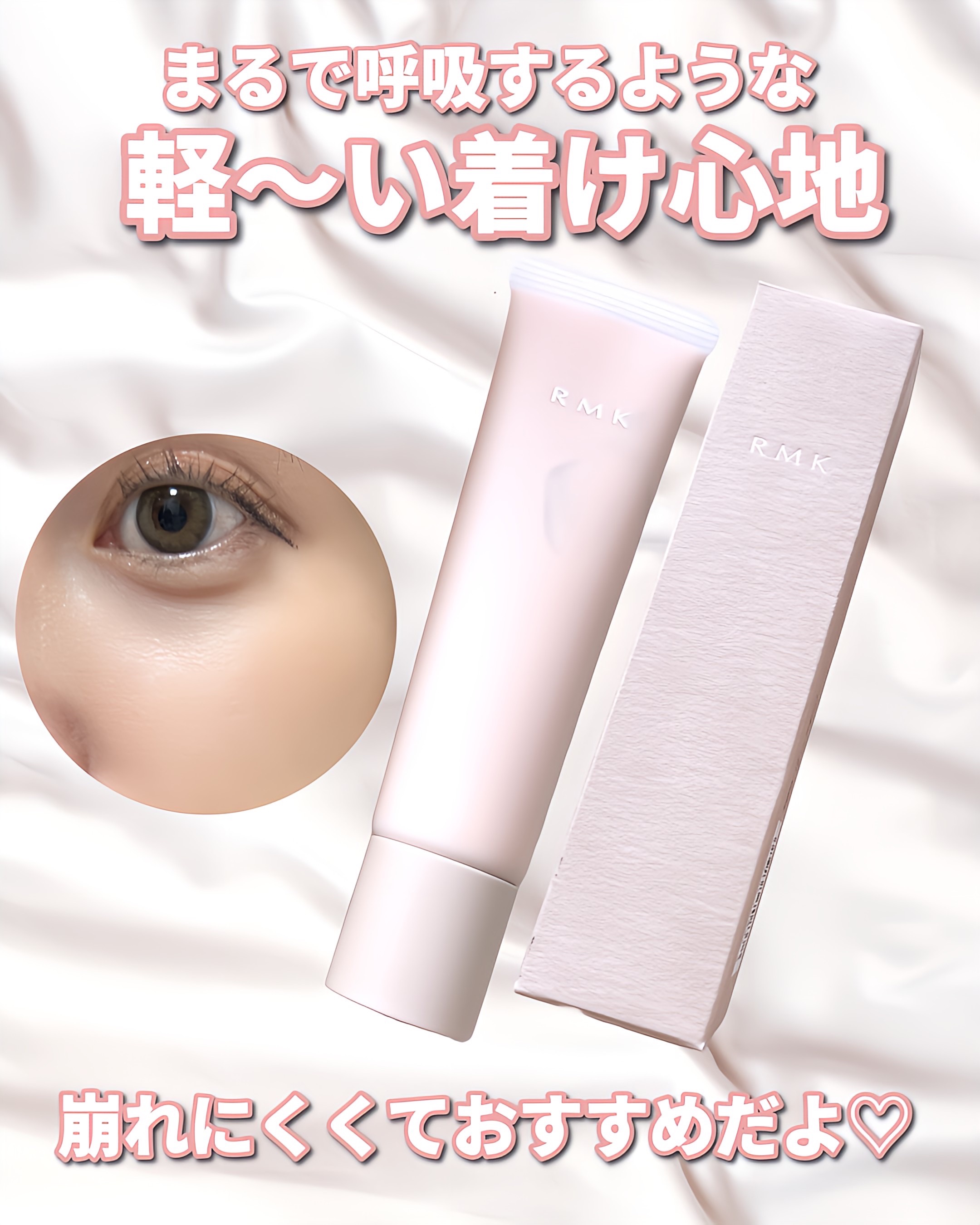 - POINT 1 肌が呼吸するような快適なつけ心地で、 毛穴をぼかしてカバー 閉塞感のない軽やかなテクスチャーなのに、毛穴や凹凸をフラットにととのえて見えにくくする。 その秘密は、3Dネットワーク構造をもつエラスティックゲル。 緻密にひろがるゲルのネットワークが球状パウダーを抱え込んで光を散らすことで、毛穴をうめるのではなく、ぼかして目立たなくします。 肌と一体化して、 厚ぼったさのないなめらかな仕上がりに。 POINT 2 メイクアップベースを塗りながら日中も肌ケア 体温でやわらかくほどけて、肌をやさしく包み込む抱水性バームを新配合。 5種の保湿成分配合で肌に豊かなうるおいをあたえ、 日中のうるおい感をキープしながらも、さらっとしてべたつかないソフトマットな肌に仕上げます。 また皮脂吸着パウダーがテカリやべたつきを抑え、 時間が経ってもよれや毛穴落ちしづらく、美しい仕上がりが長時間持続します。 POINT 3 光と色でつくり出す、 明るさに満ちた肌* 3種類のパールとベースカラーの掛け合わせによって、肌の明るさを底上げします。 光と色の効果を知り尽くしたRMKならではの絶妙なバランスで、 本来の肌の美しさを損なう ことなくスキントーンをととのえて、にごりのない澄んだ肌へ。 毛穴はもちろん、 肌悩みや 仕上がりに合わせて選べるこだわりのカラーラインナップ。 部分使いも可能です。 *0203のみ