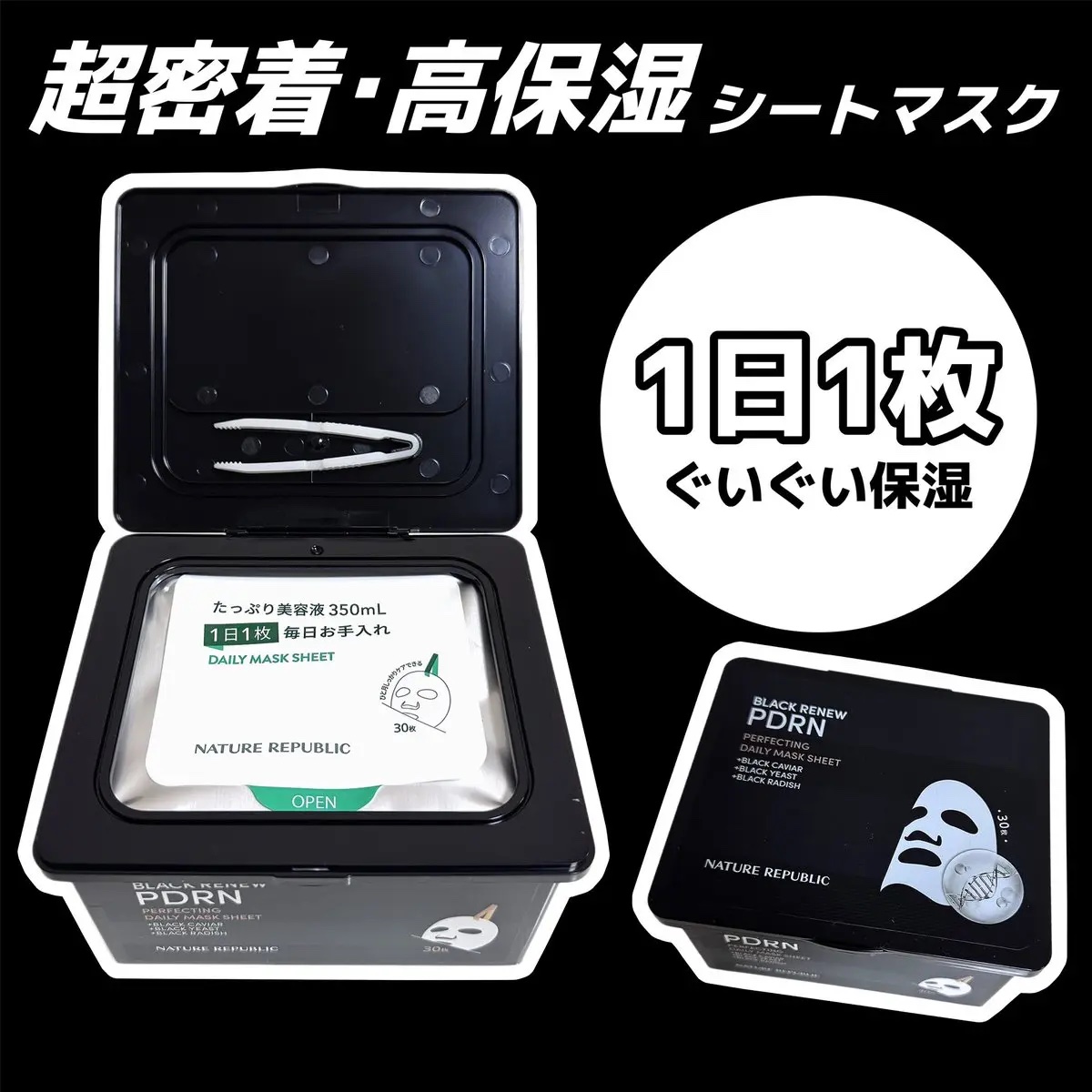 ネイチャーリパブリックブラックPDRNデイリーシートマスク#提供#PRネイチャーリパブリックさまからいただきました!#ブラックPDRN新作のシートマスクをひと足先にお試しさせていただきました!とろみのあるテクスチャの美容液がたっぷりで、高保湿...