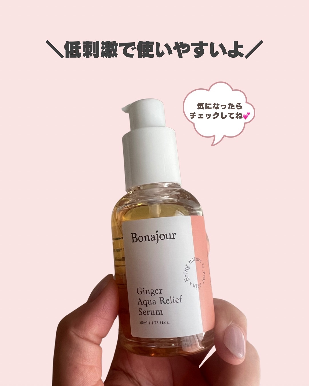 Bonajourジンジャーアクアリリーフセラムショウガ水(整肌)60%も配合されたセラム!生姜に含まれるジンゲロールはお肌の新陳代謝を促進して、保湿・カーミングケアしながら肌バリア機能を健やかに保ってくれるそうです😊✨さらっと肌馴染みの良いテ...